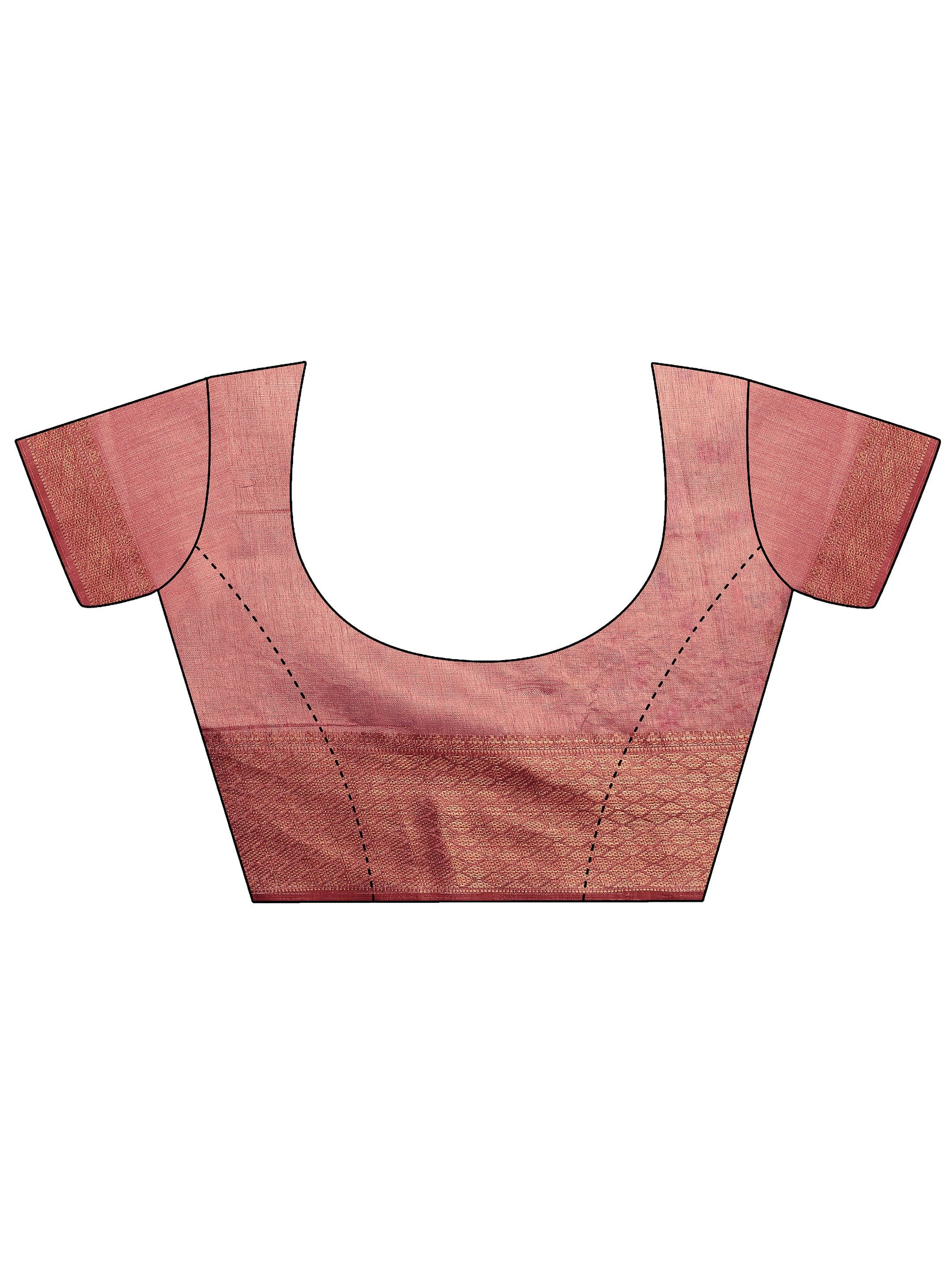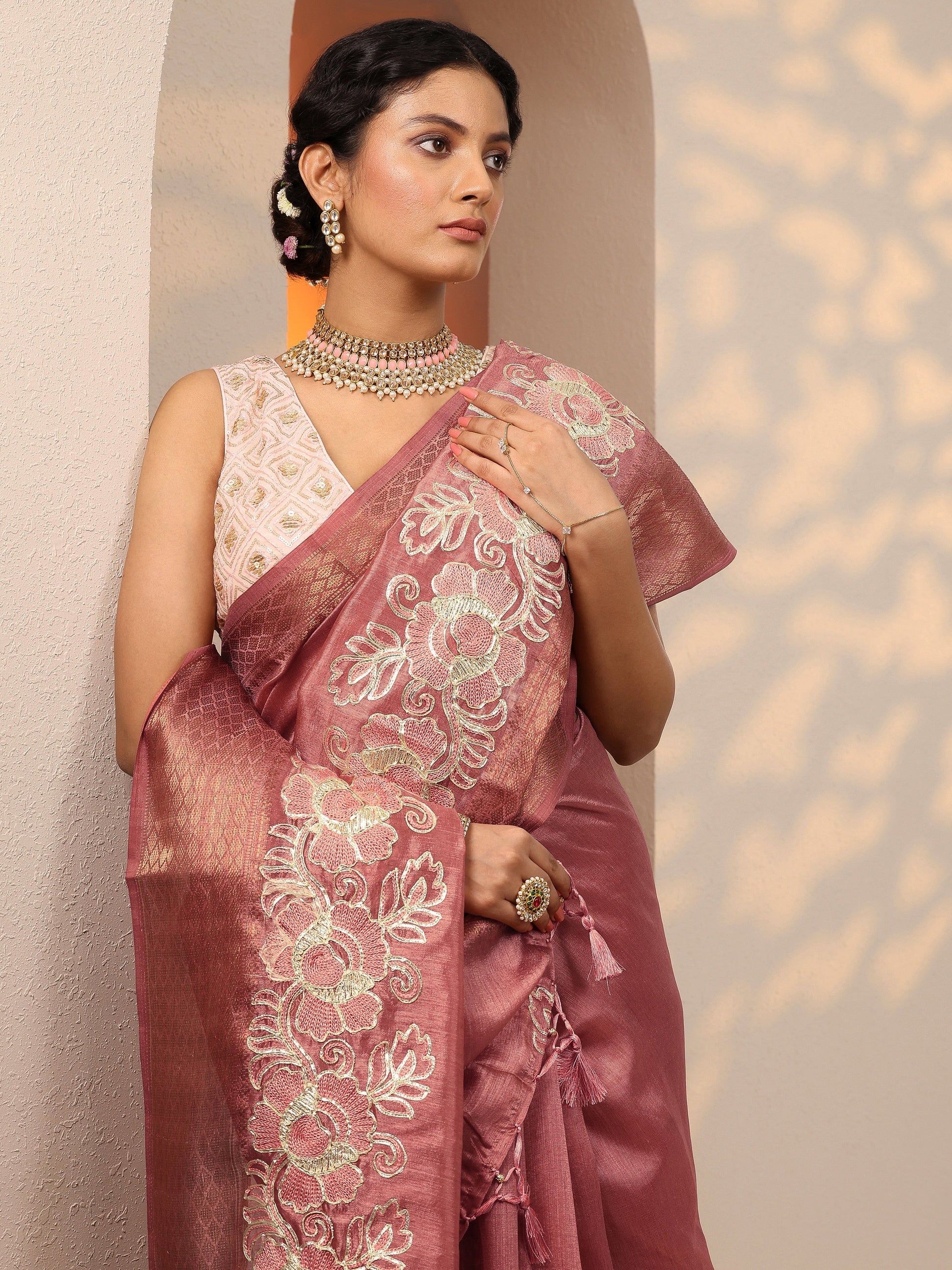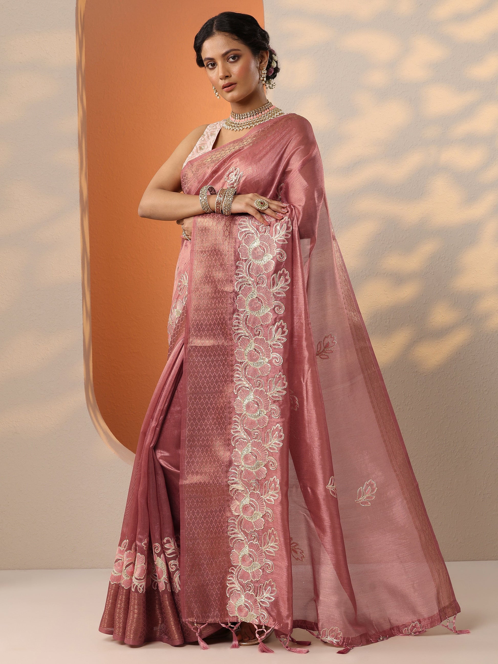 Peach Embroidered Silk Blend Saree With Unstitched Blouse Piece