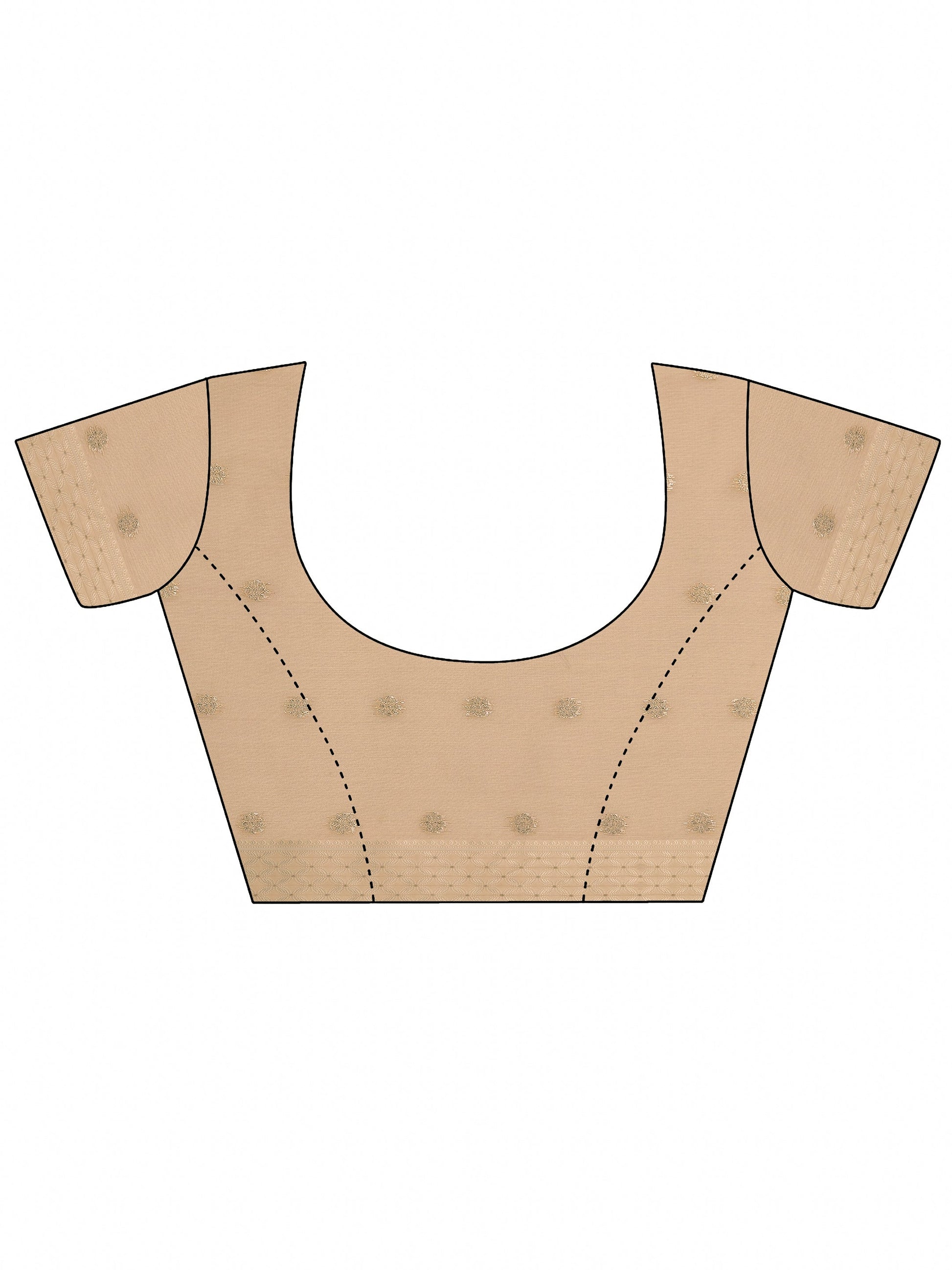 Peach Printed Chanderi Saree With Unstitched Blouse Piece