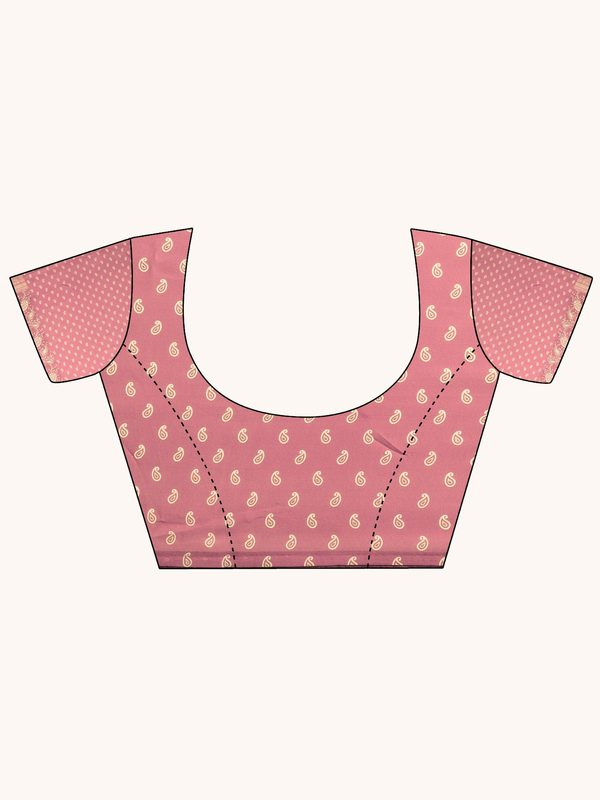 Our Pink printed Georgette saree features captivating paisley print. Complemented with a unstitched blouse Piece. This charming saree is perfect for festive occasions
