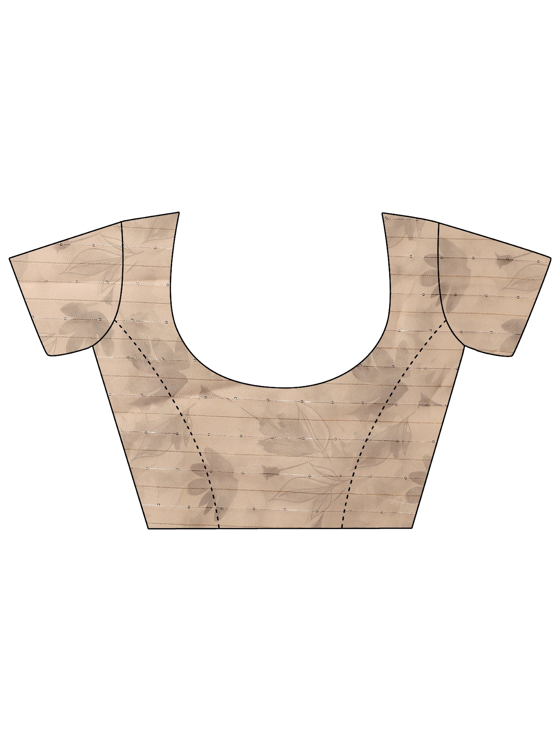 Our beige printed nylon saree features captivating floral print. Complemented with a unstitched blouse Piece. This charming saree is perfect for festive occasions