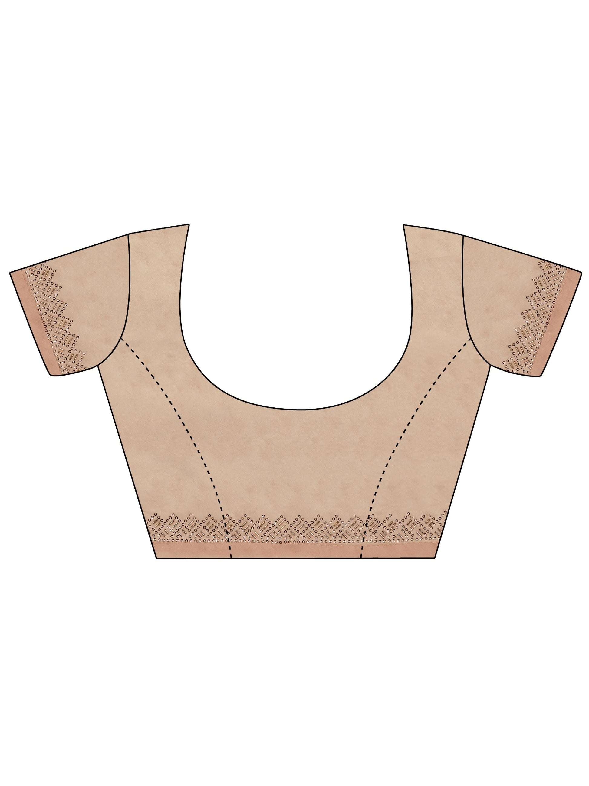 Peach Printed Organza Saree With Unstitched Blouse Piece