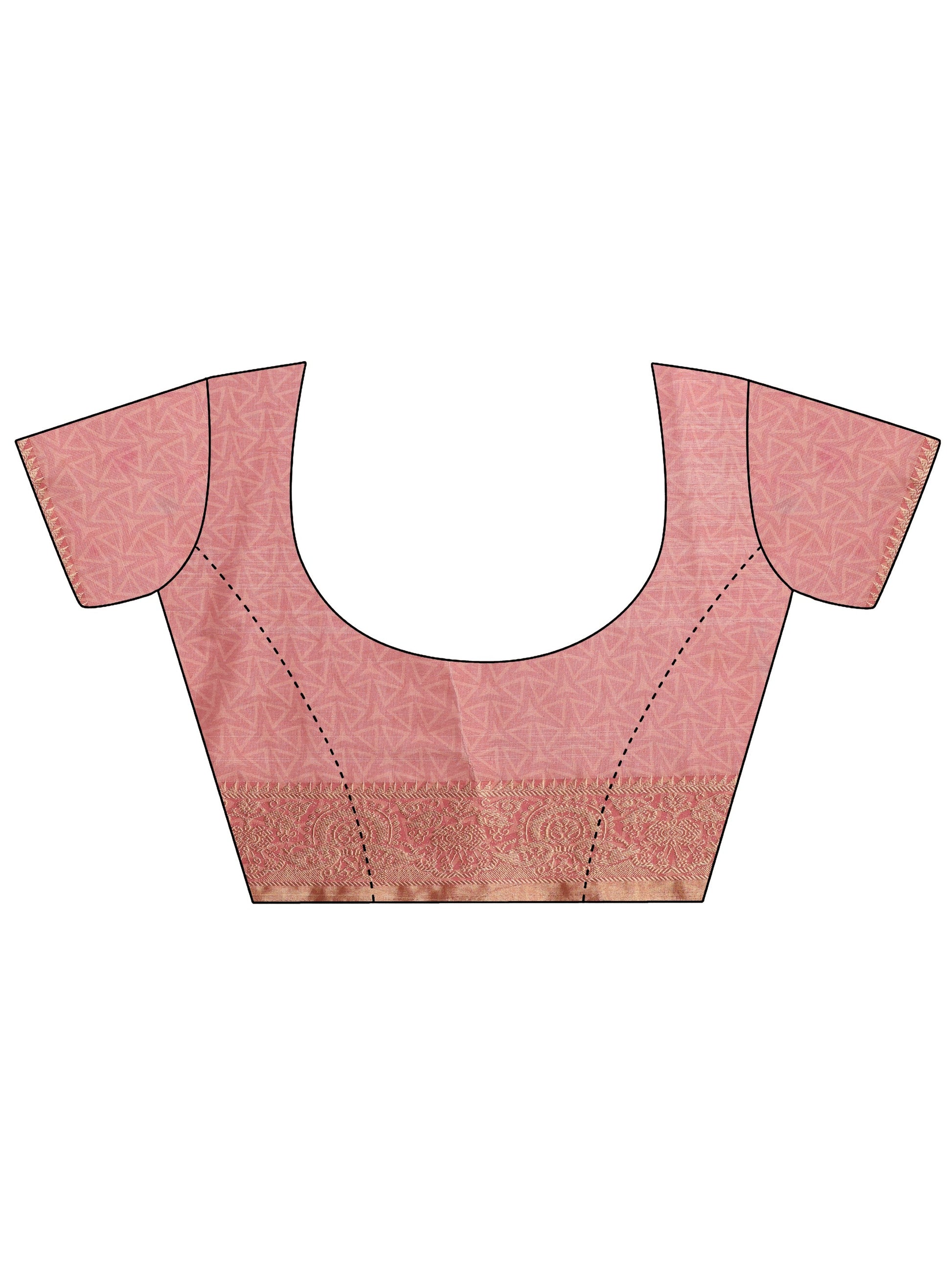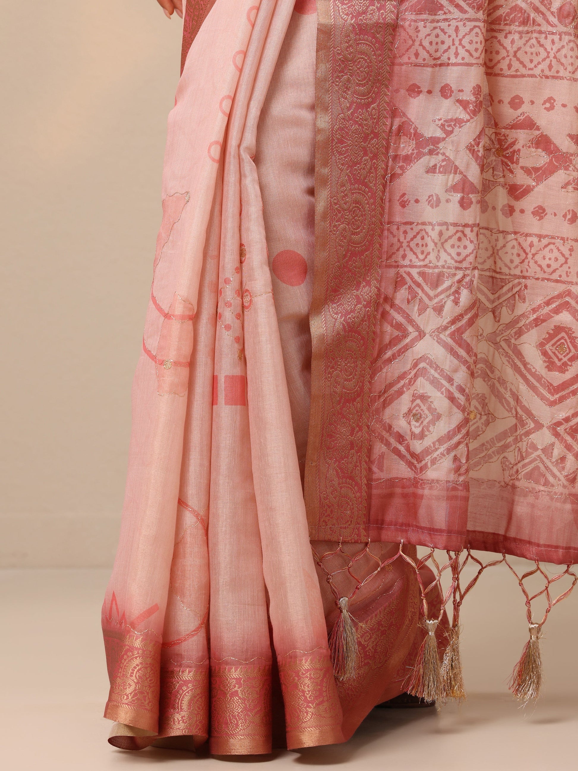 Peach Printed Silk Blend Sarees With Unstitched Blouse Piece