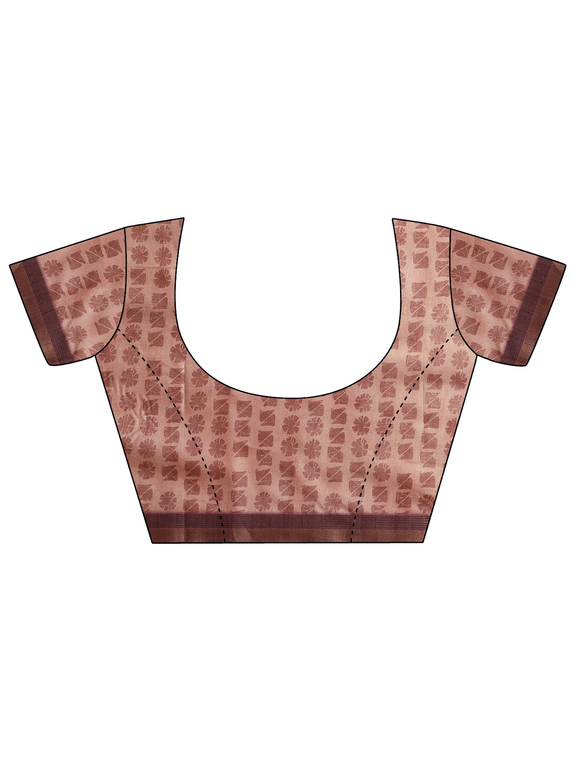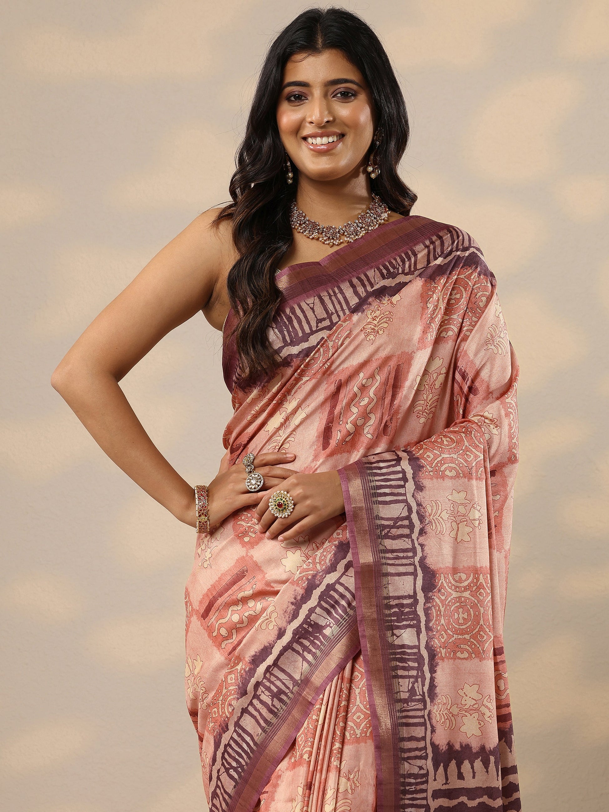 Peach Printed Silk Blend Sarees With Unstitched Blouse Piece