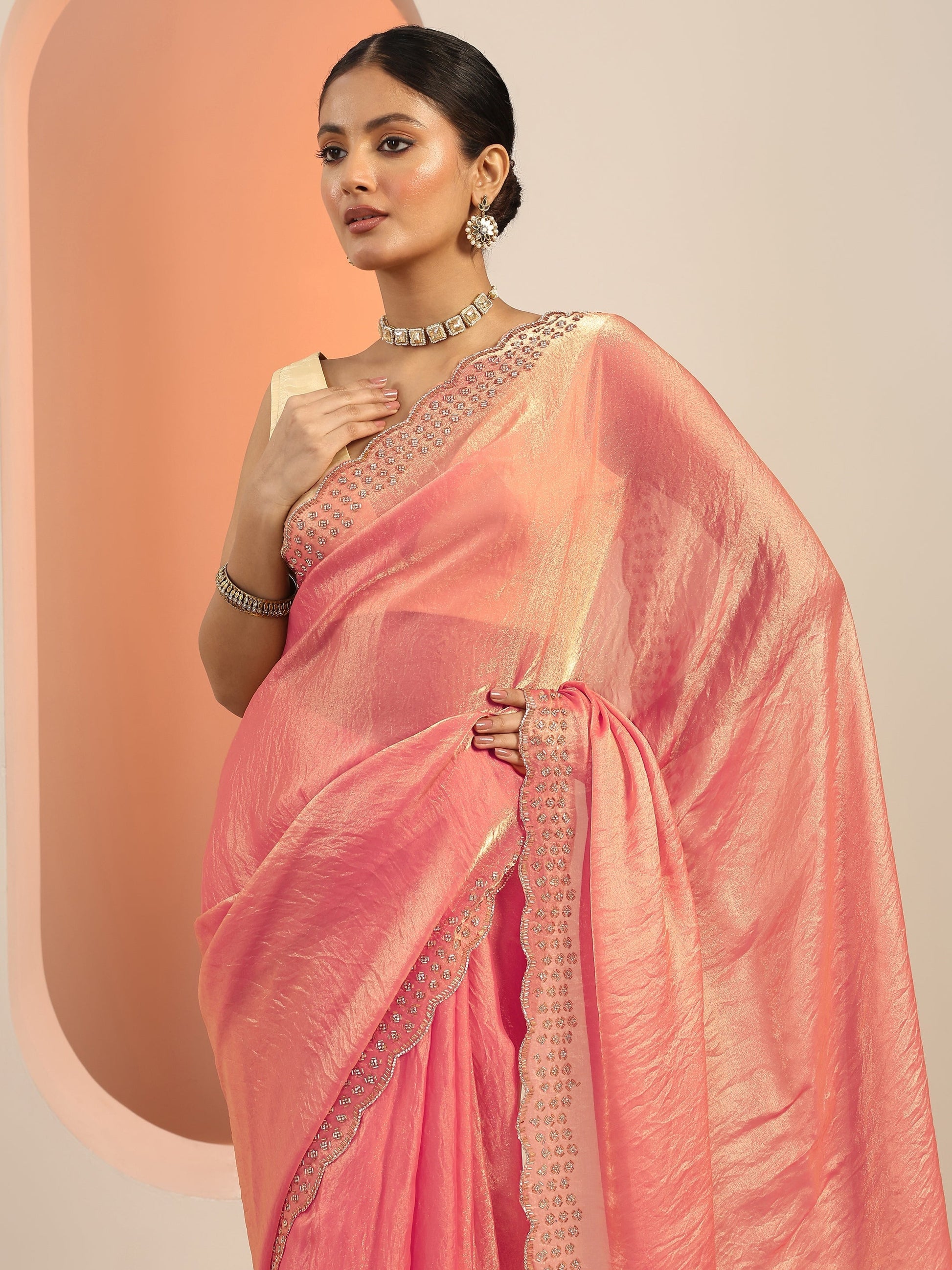 Our Peach Satin Saree Features Captivating Solid Design. Complemented With An Unstitched Blouse Piece. This Charming Saree Is Perfect For Festive Wear