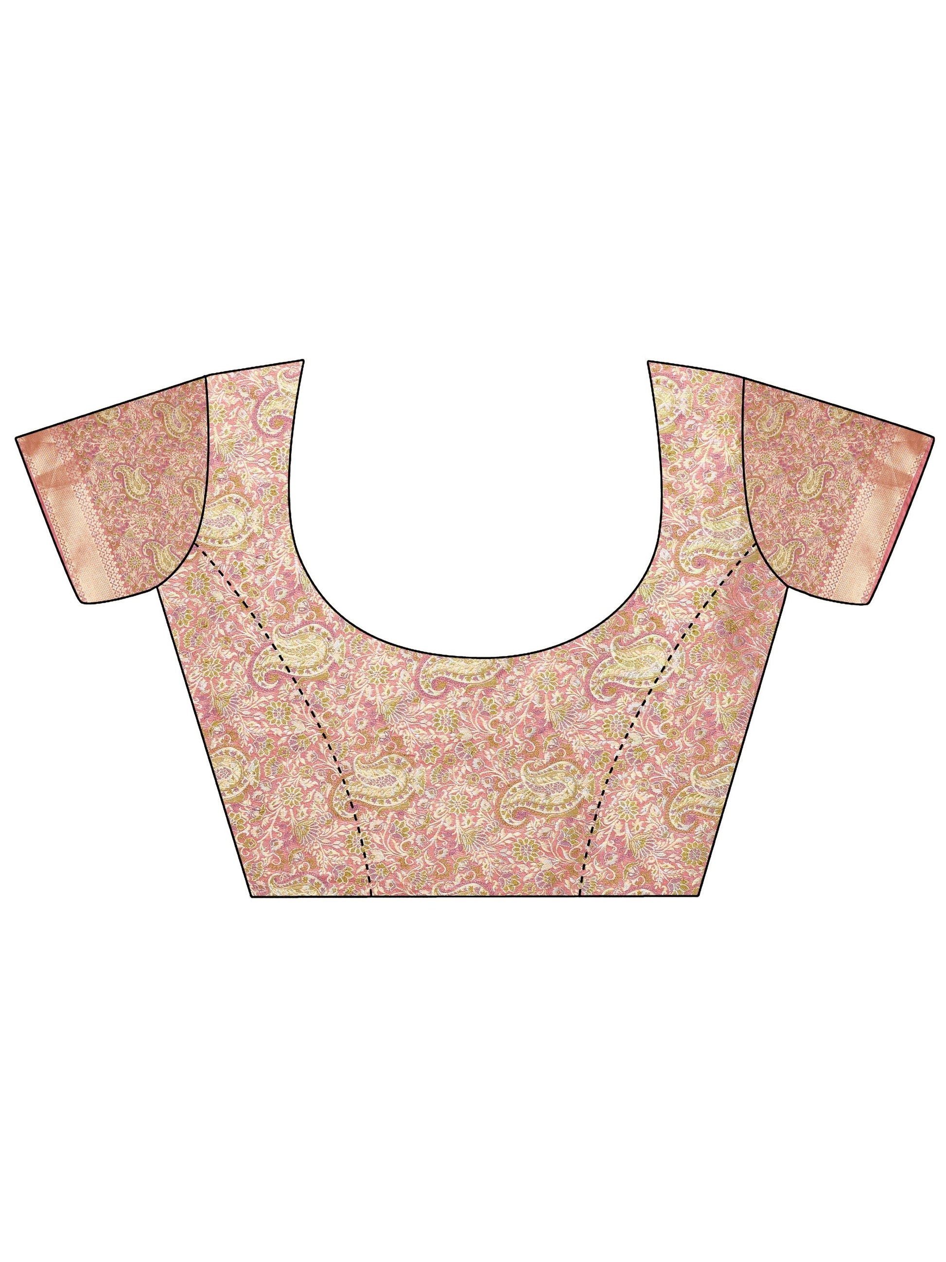 Our Pink Printed Silk Blend Saree Features Captivating Floral Print. Complemented With An Unstitched Blouse Piece. This Charming Saree Is Perfect For Festive Occasions