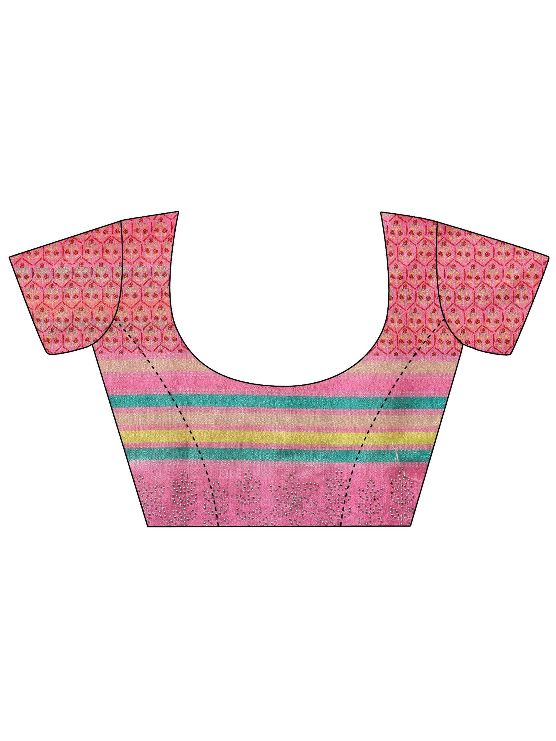 Pink Embellished Chinon Saree With Unstitched Blouse Piece