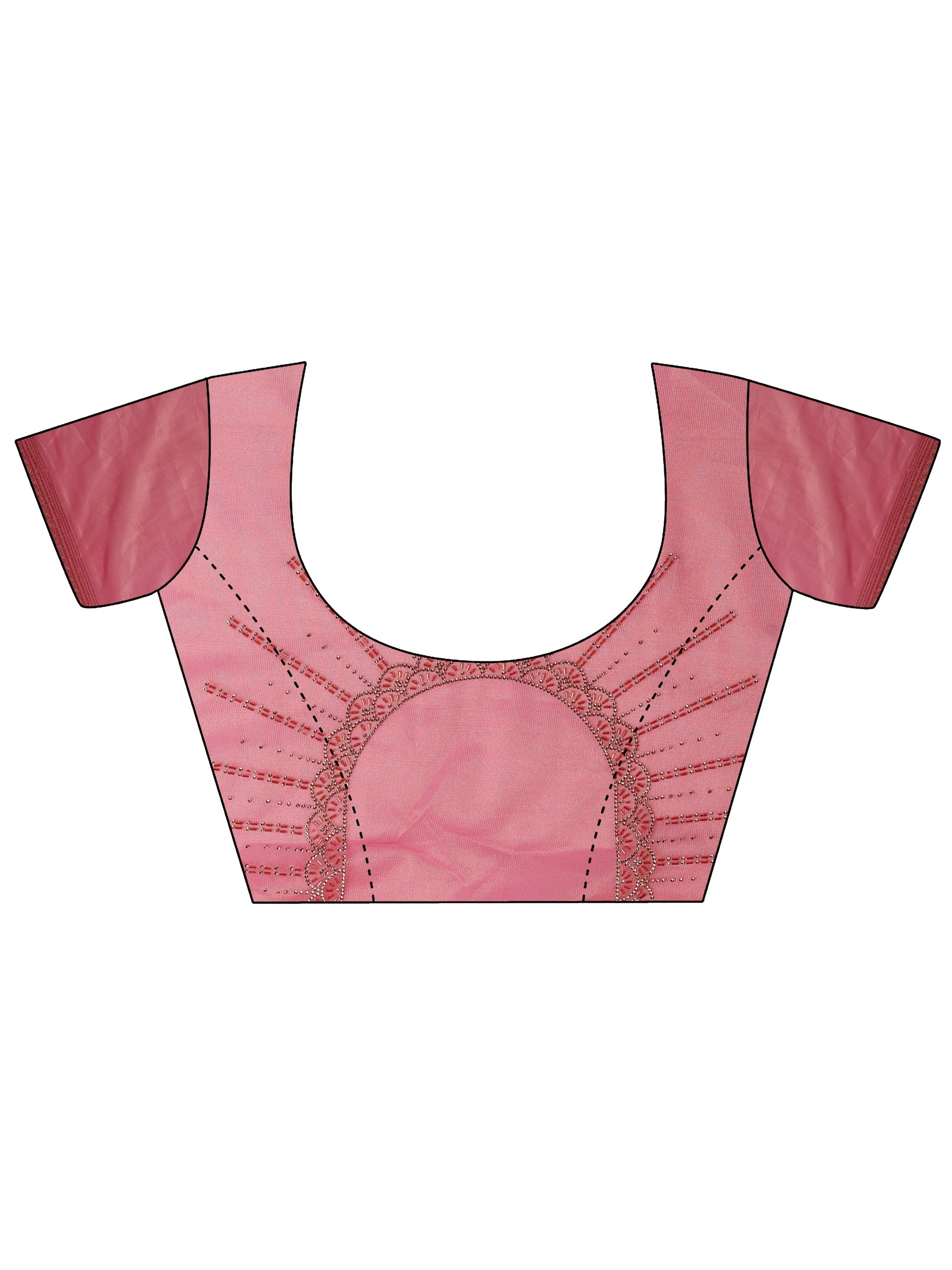 Pink Embellished Nylon Sarees With Unstitched Blouse Piece