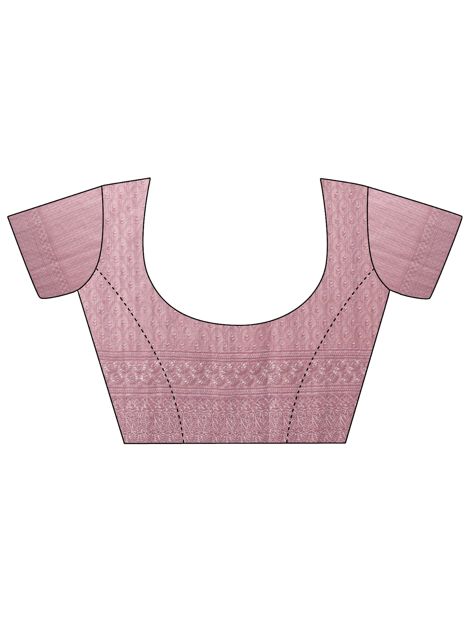 Our pink organza saree features captivating embellishments. Complemented with a unstitched blouse Piece. This charming saree is perfect for festive occasions
