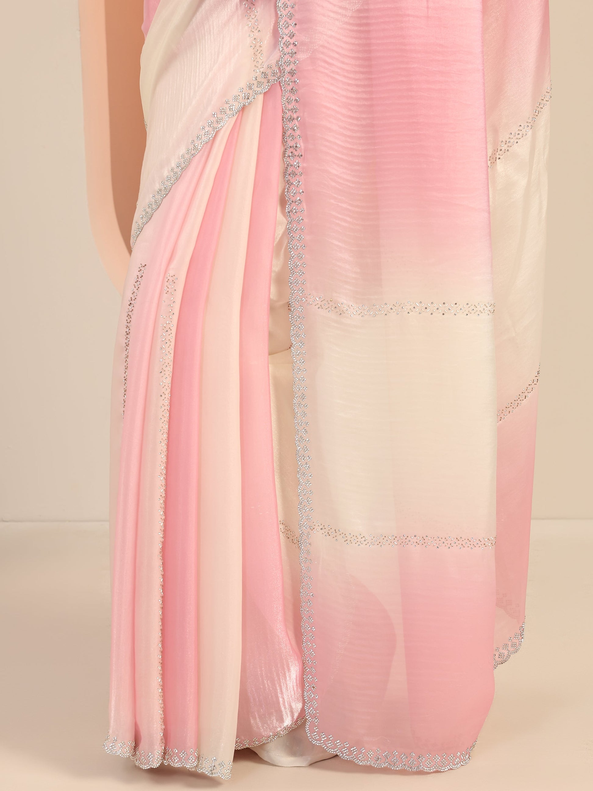 Pink Embellishments Satin Saree With Unstitched Blouse Piece