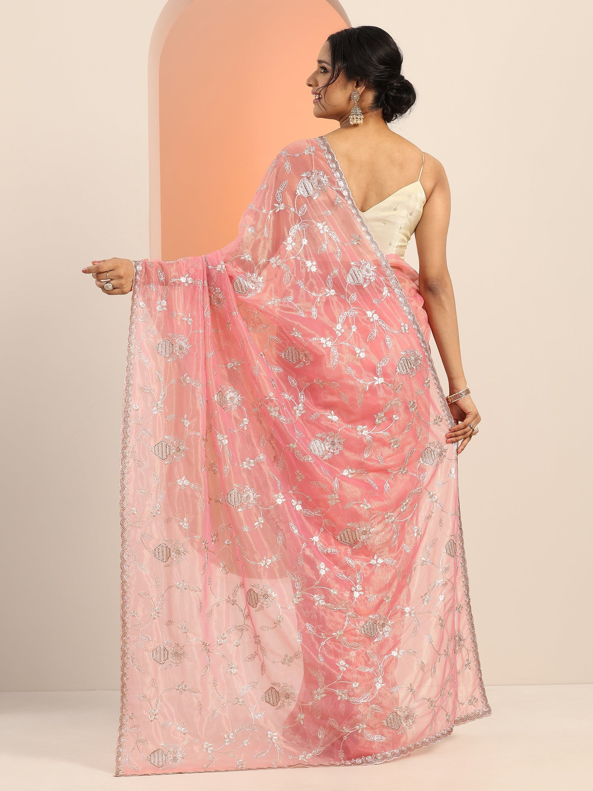Pink Embroidered Nylon Saree With Unstitched Blouse Piece