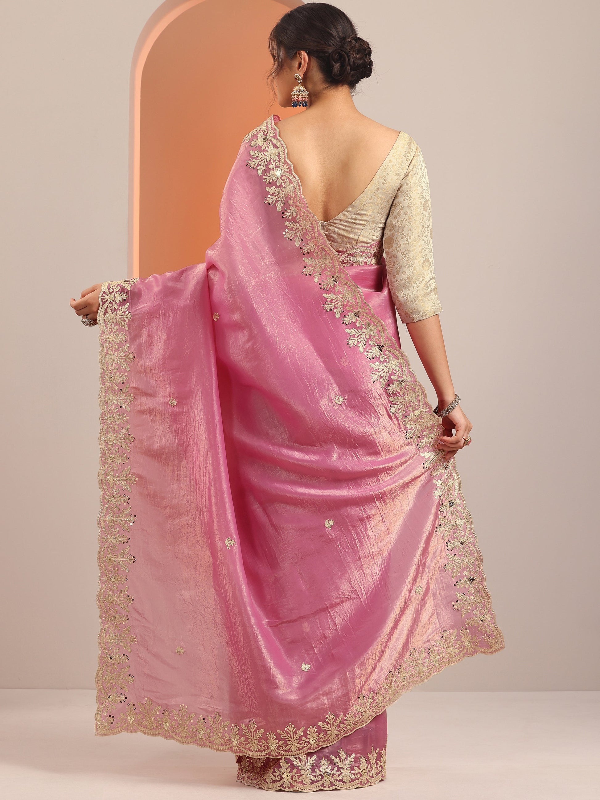 Pink Embroidered Organza Saree With Unstitched Blouse Piece