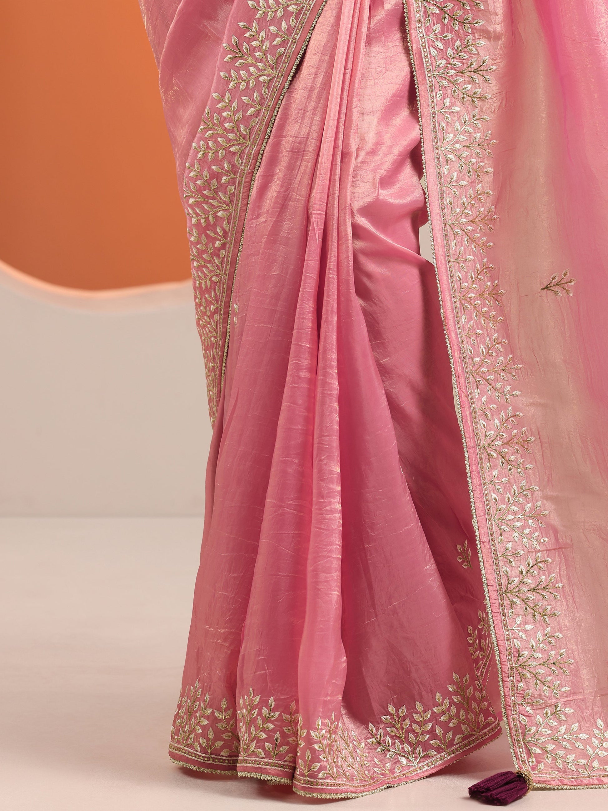 Pink Embroidered Organza Saree With Unstitched Blouse Piece