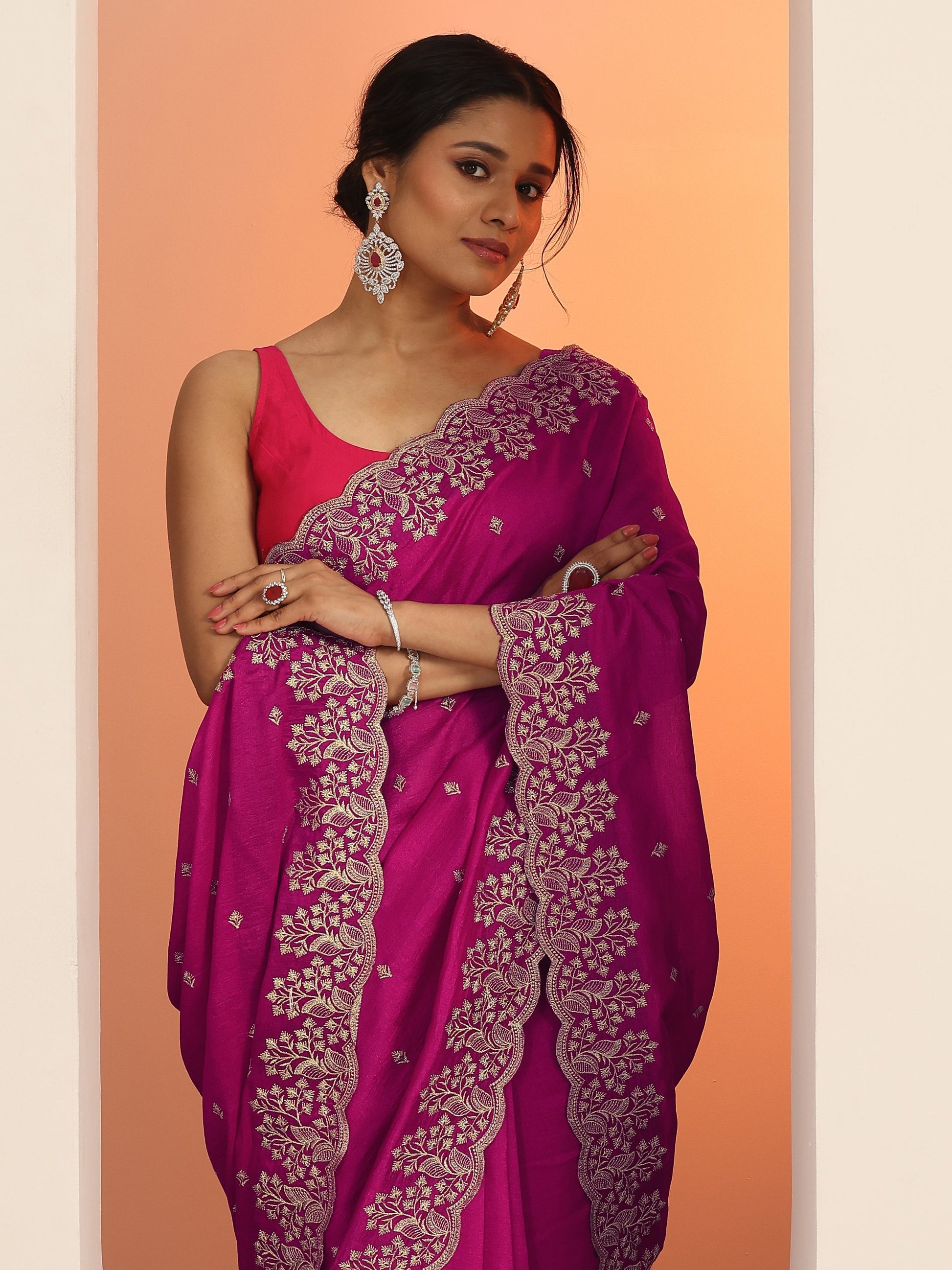 Pink Embroidered Silk blend Saree With Unstitched Blouse Piece