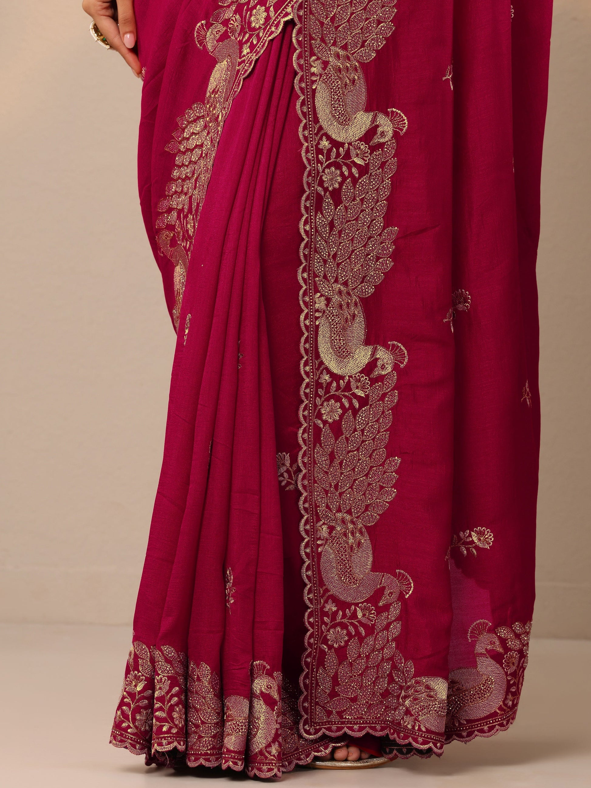 Pink Embroidered Silk Blend Sarees With Unstitched Blouse Piece