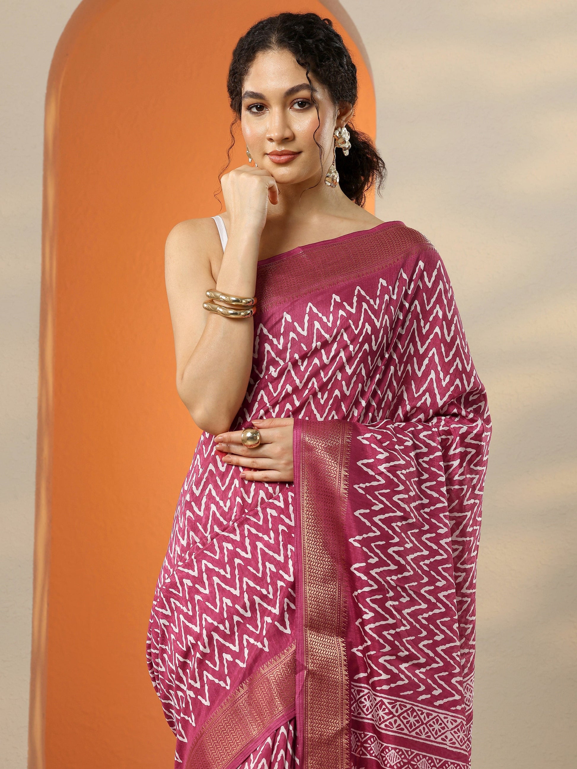 Pink Leheriya Printed Silk Blend Saree With Unstitched Blouse Piece