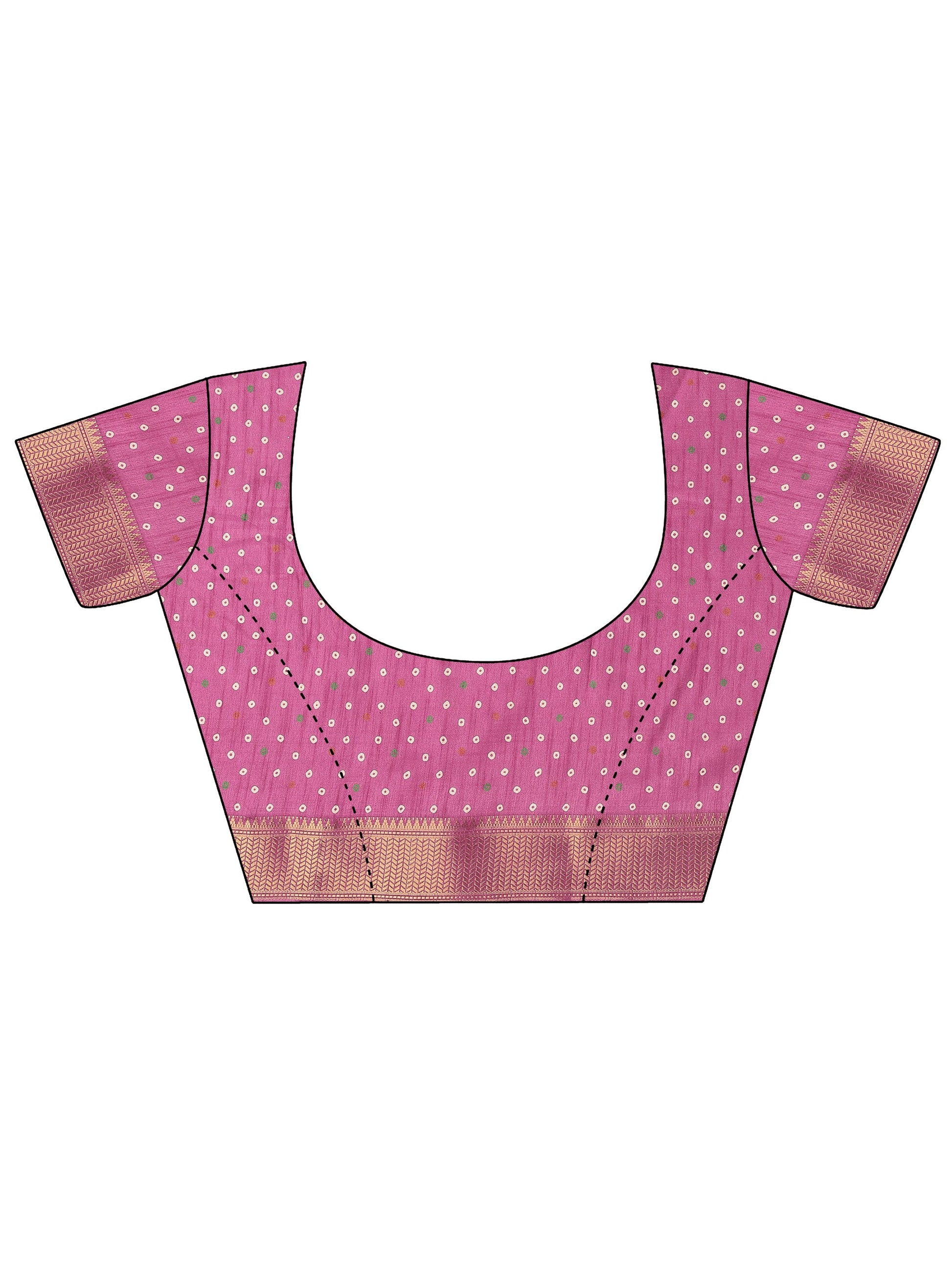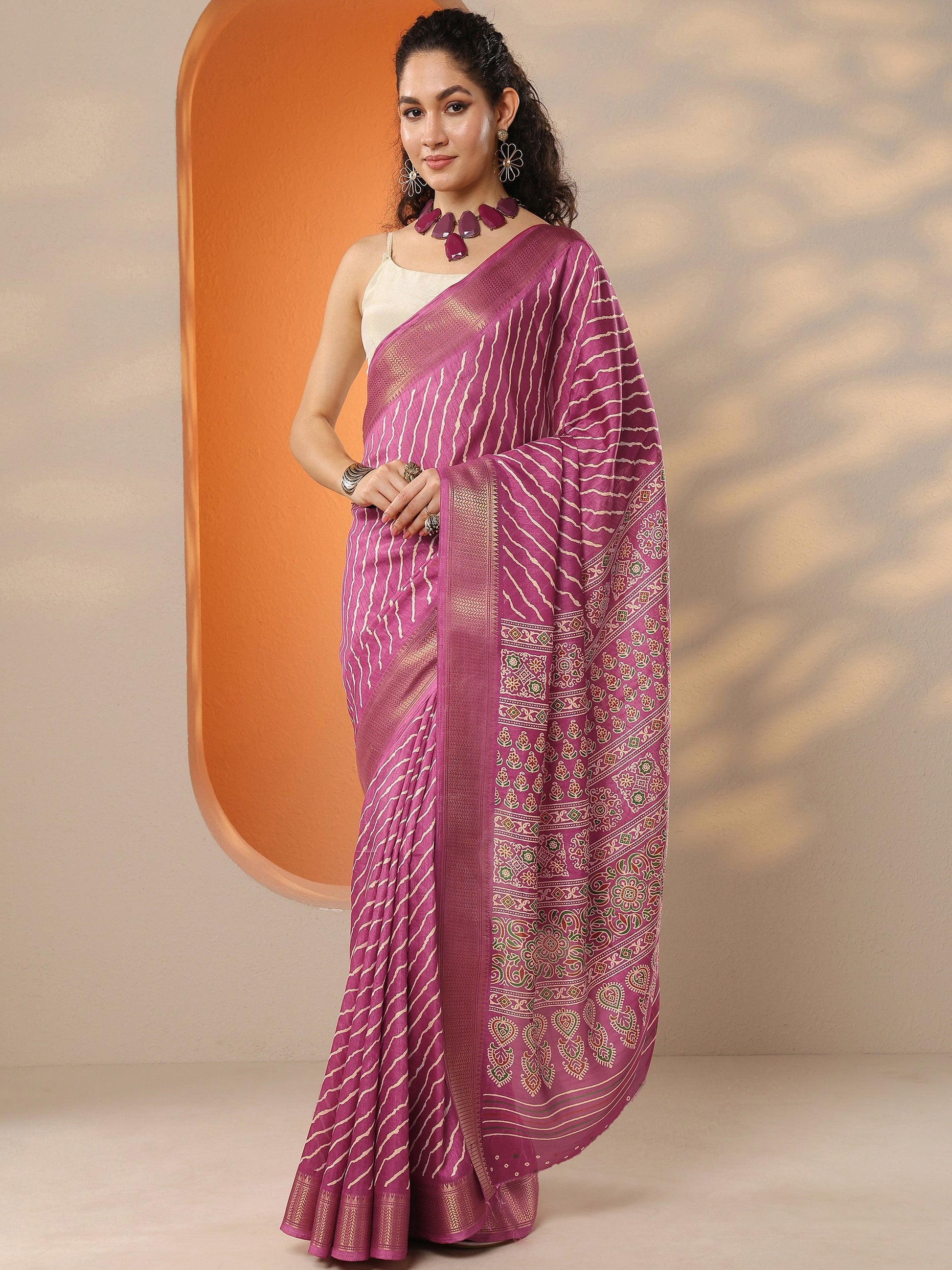 Pink Leheriya Printed Silk Blend Saree With Unstitched Blouse Piece
