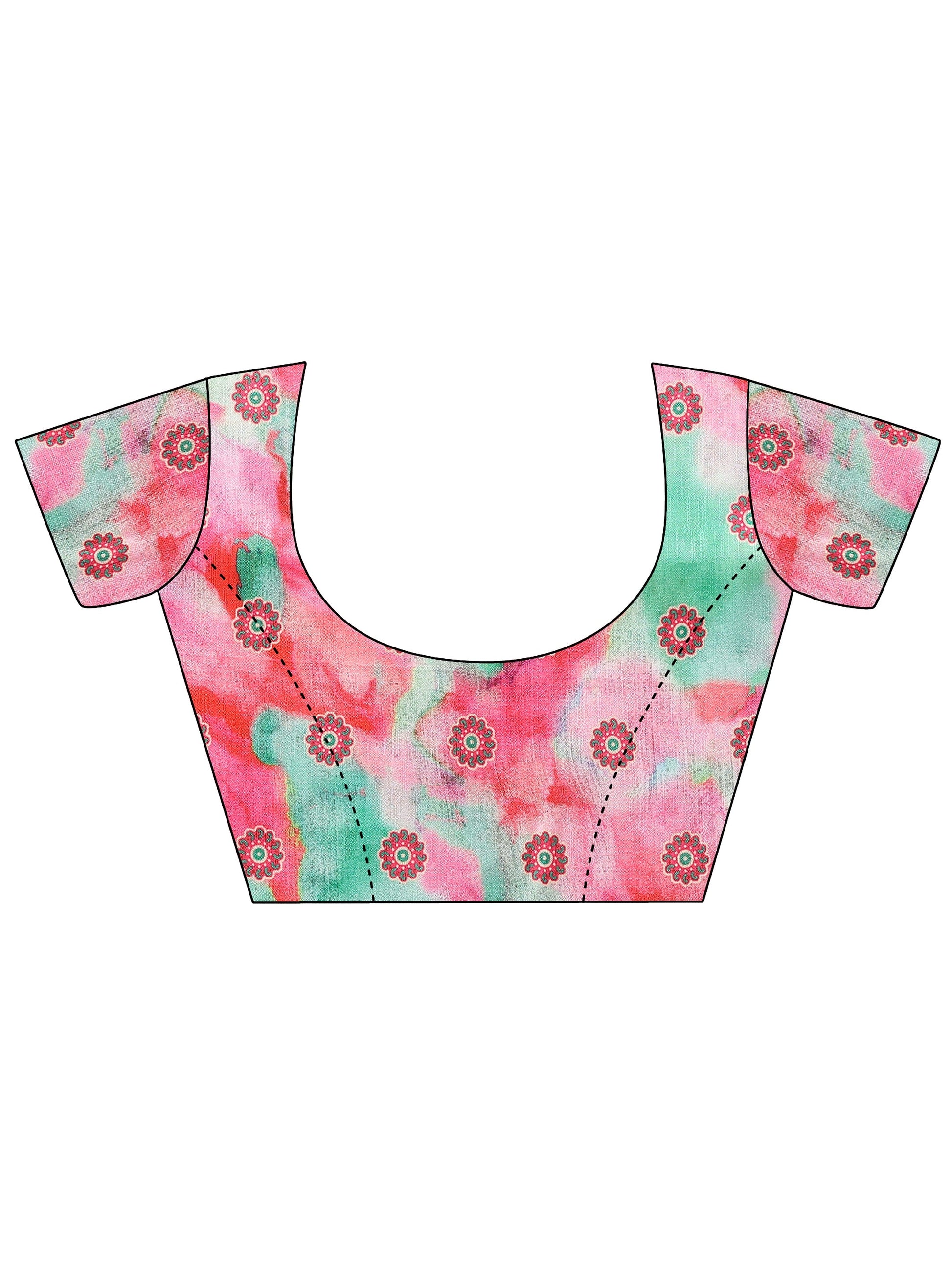 Our pink printed Chinon saree features captivating floral print. Complemented with a blouse piece. This charming saree is perfect for festive occasions.