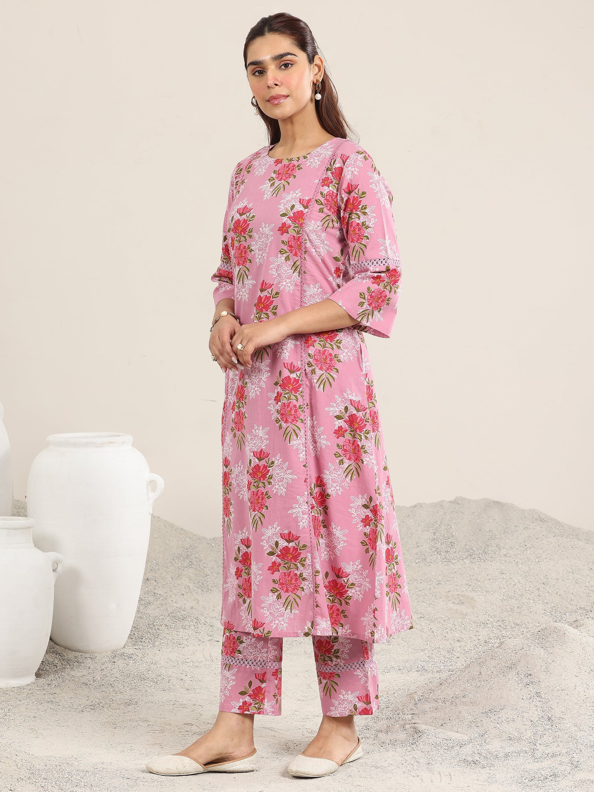 Our 2-piece Pink Cotton Straight-fit features a Round Neckline, Regular Sleeves, and statement yoke. Complemented with Straight Pants with an Elasticated waistband. Adorned with Floral prints, this style is perfect for Casual occasions.