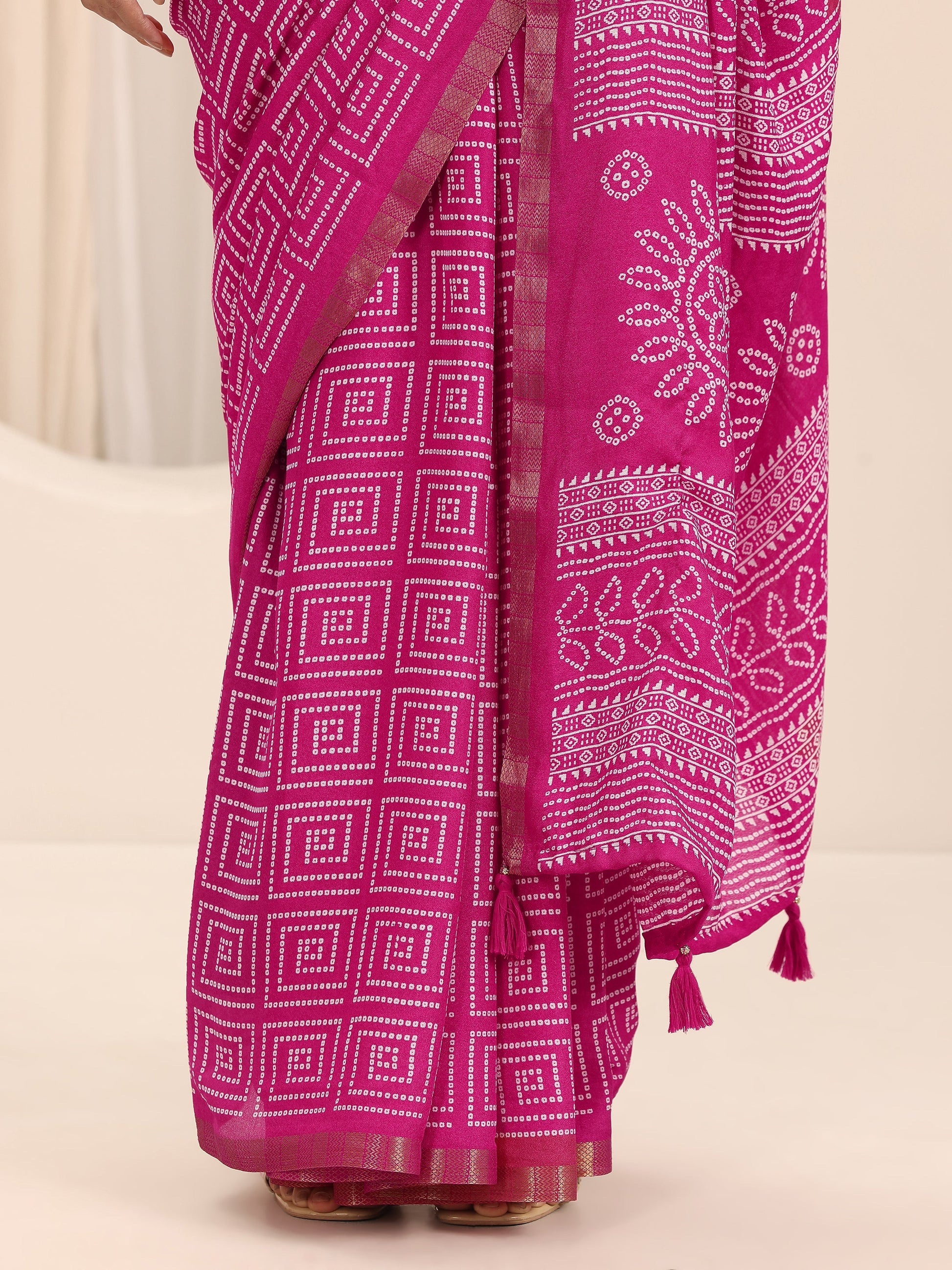 Pink Bandhani Printed Georgette Saree With Unstitched Blouse Piece