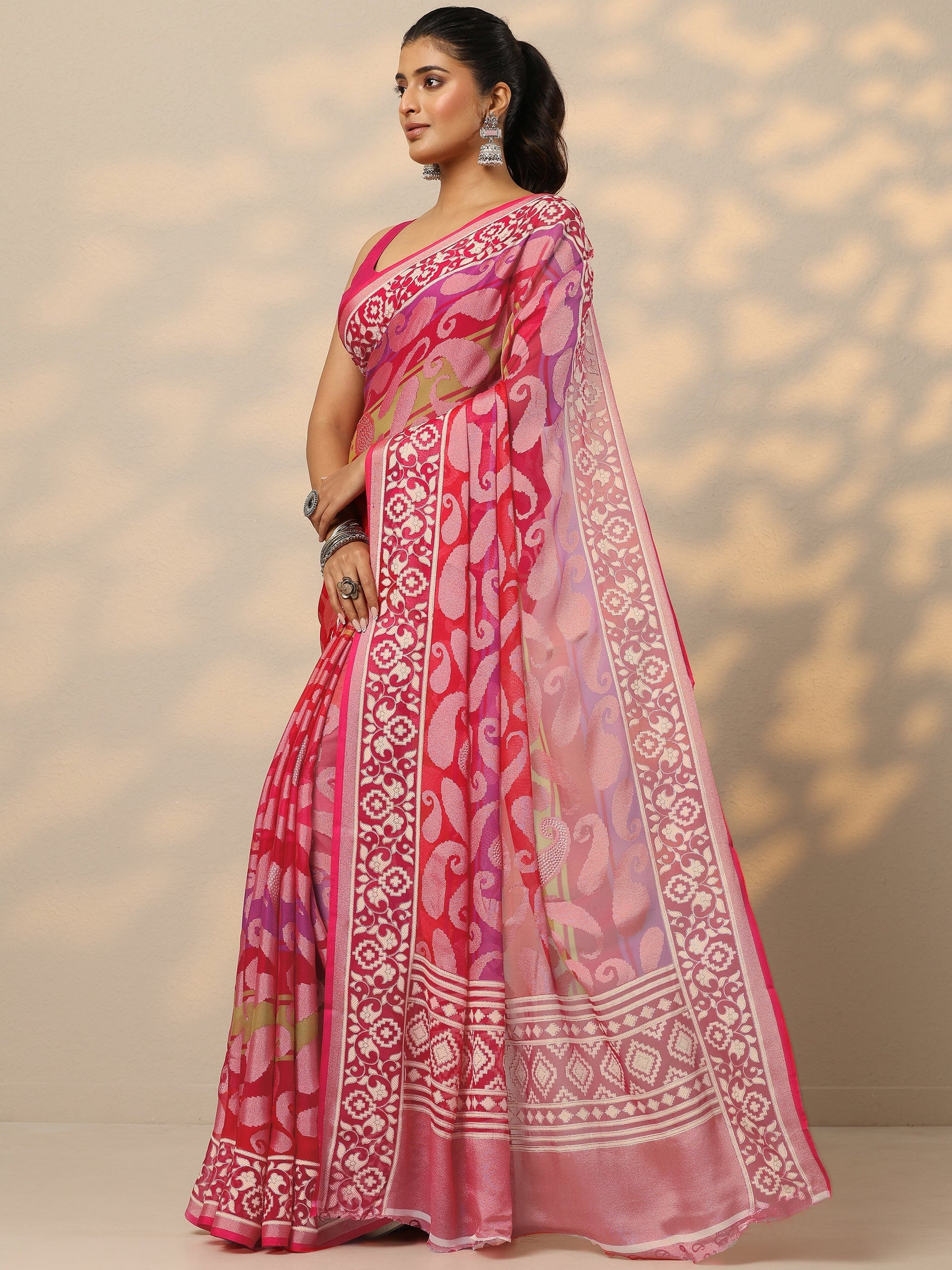Pink Printed Georgette Saree With Unstitched Blouse Piece