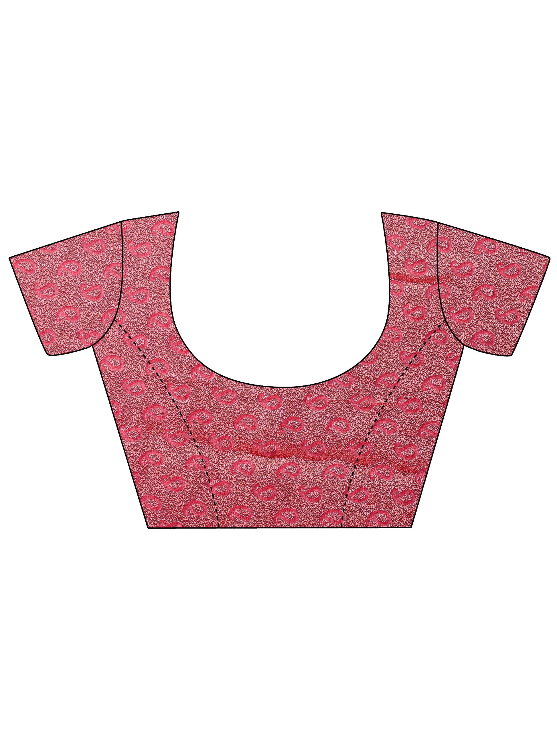 Our pink printed georgette saree features captivating floral print. Complemented with a blouse piece. This charming saree is perfect for festive celebrations.