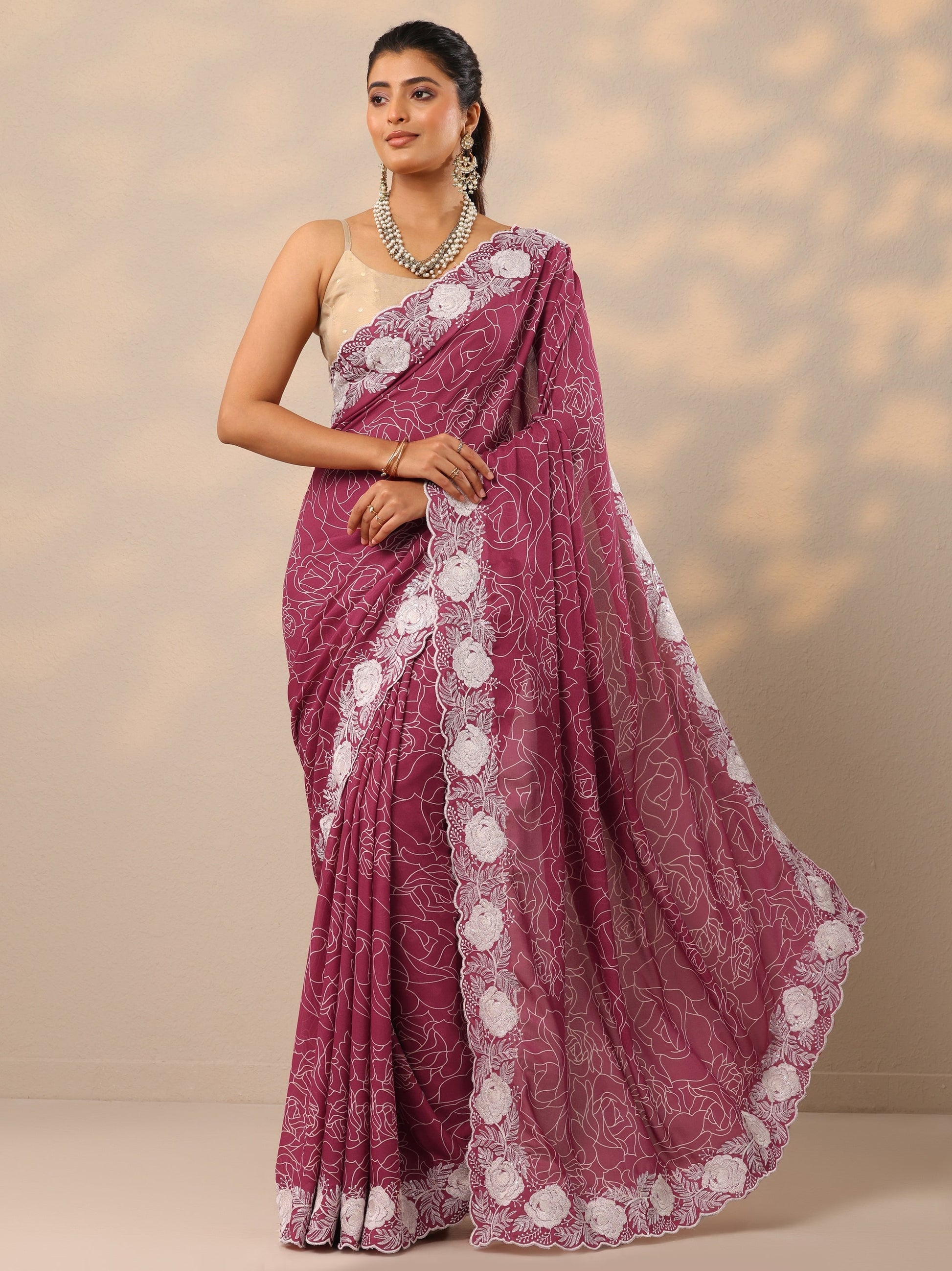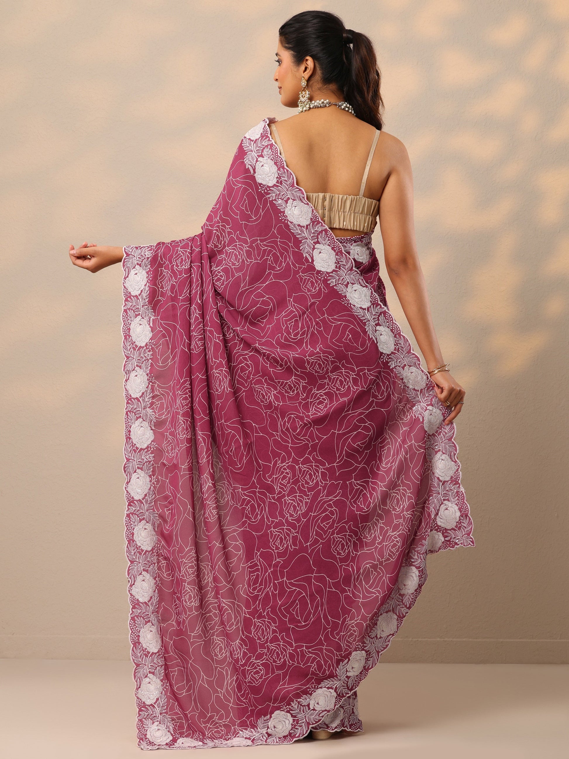 Pink Printed Georgette Sarees With Unstitched Blouse Piece