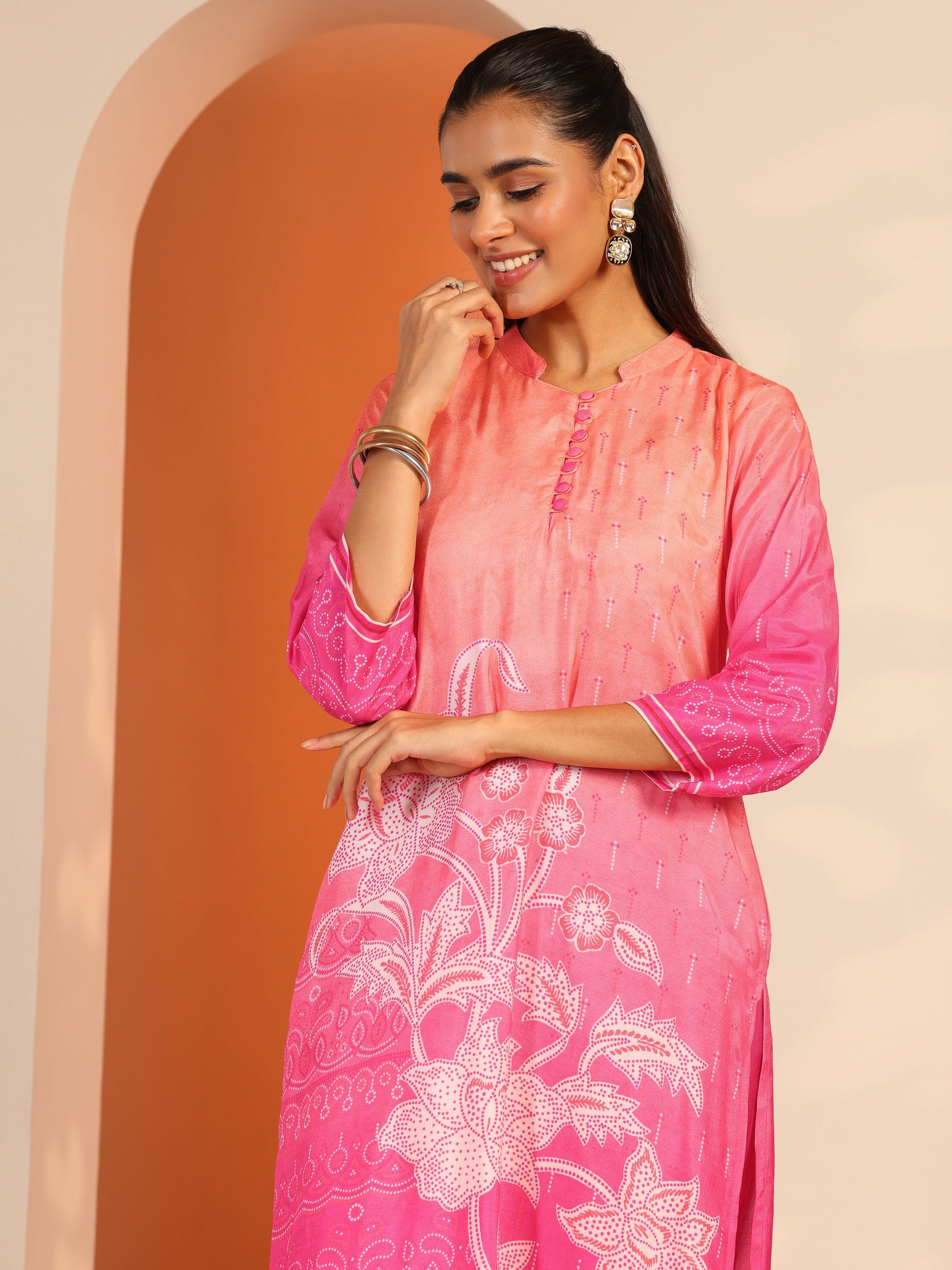 Pink Printed Muslin Straight Suit Set With Dupatta