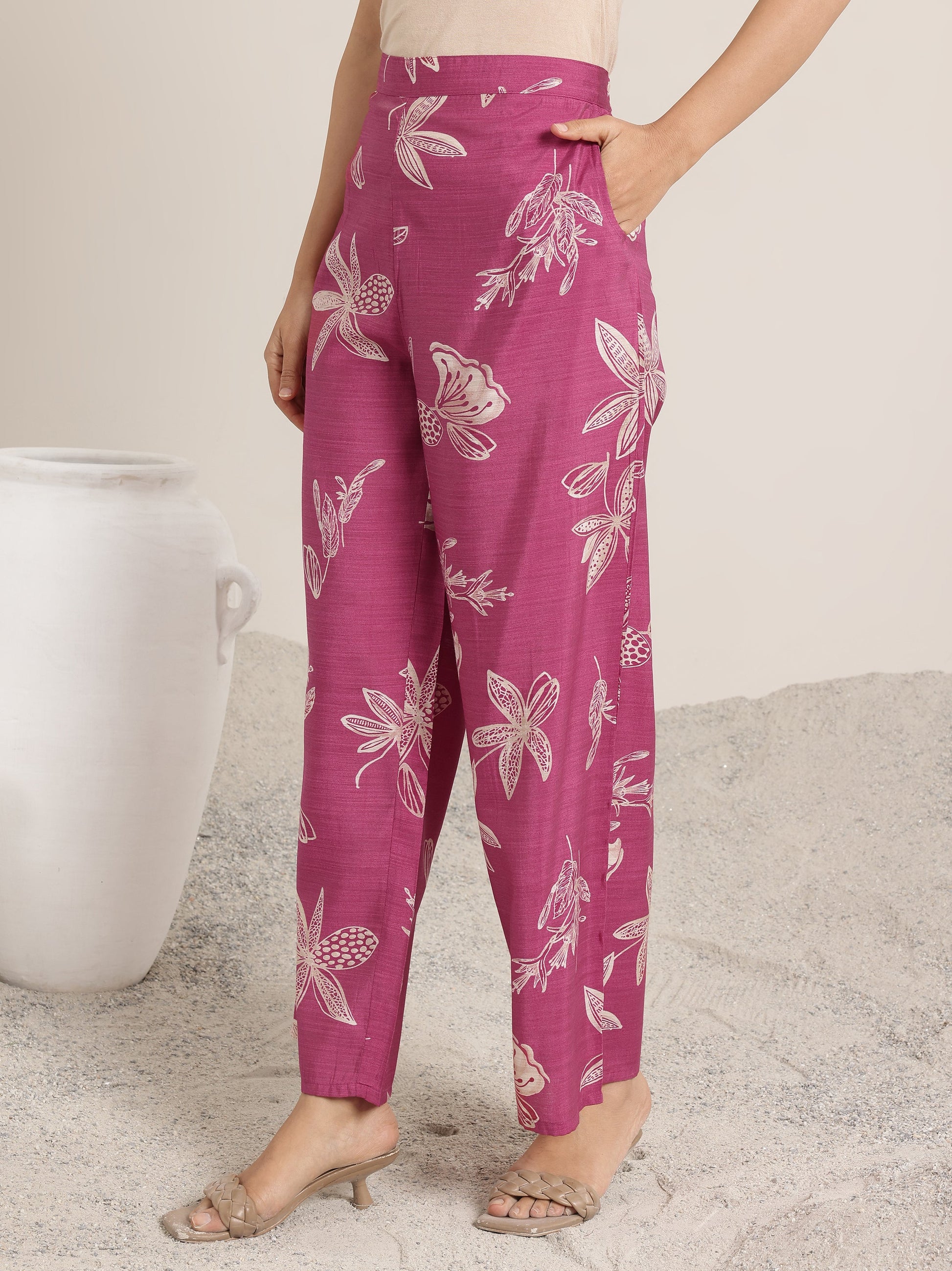 Our 2-piece blue printed silk blend co-ord set features a kurta with a shirt collar with a buttoned-down detailing and three-quarter batwing sleeves. Complemented with trousers with a matching trousers with a partially elasticated waistband and roomy pockets. Highlighted with floral prints, this style is perfect for casual outings.