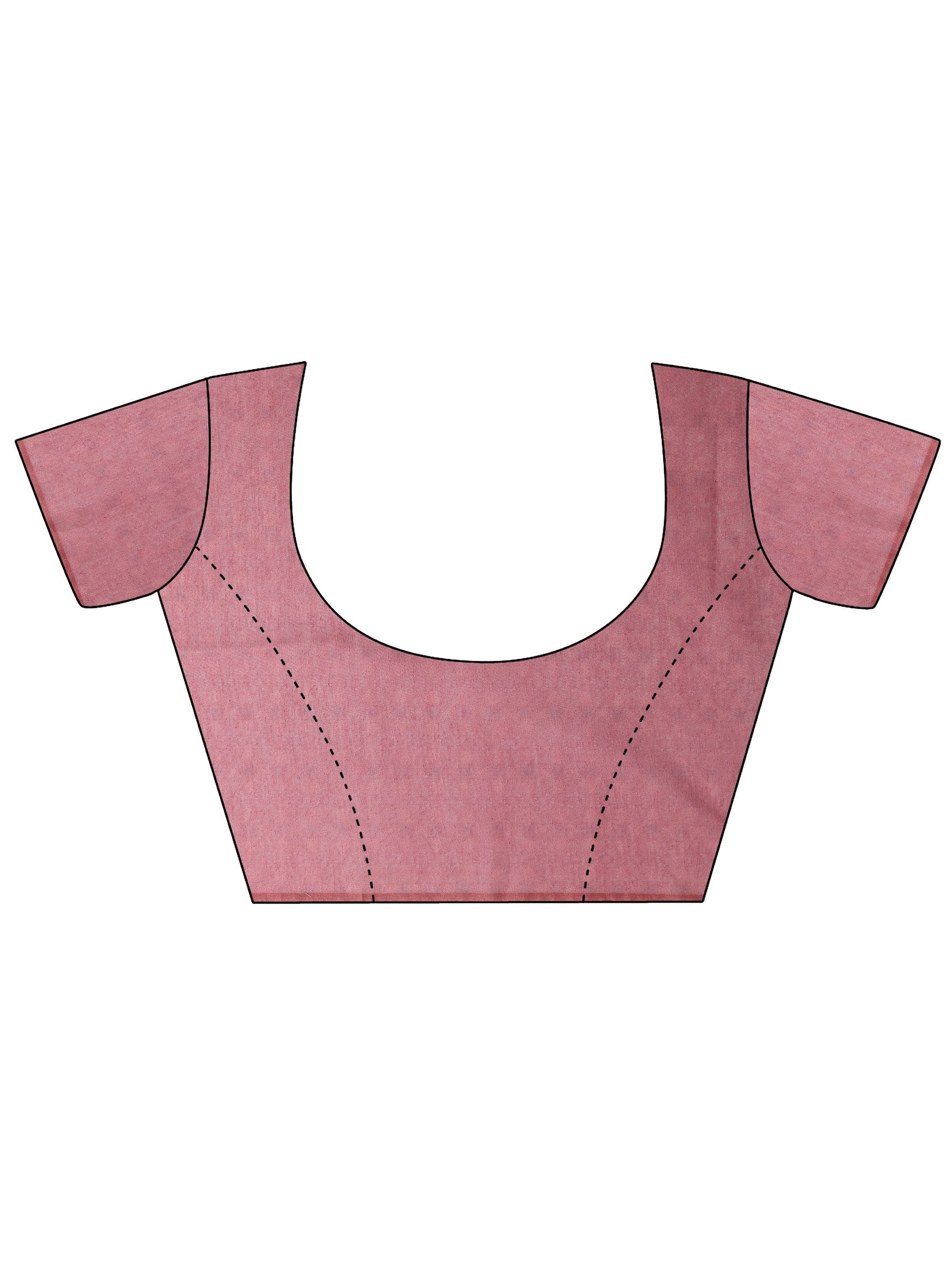 Pink Printed Silk Blend Saree With Unstitched Blouse Piece