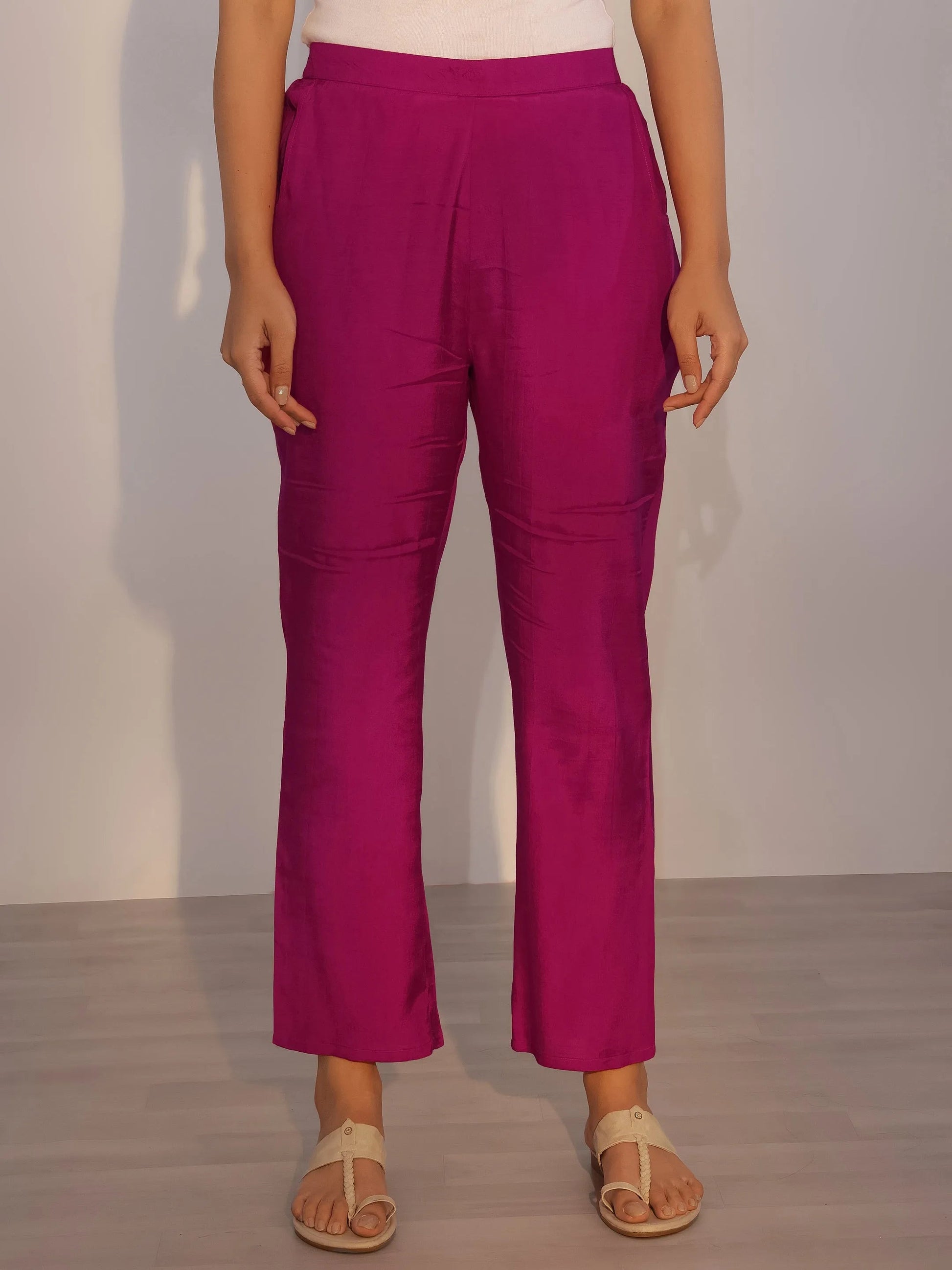 Our 3-piece pink printed silk blend straight suit set features a straight-fit kurta with a keyhole neckline and three-quarter sleeves. Adorned with matching straight pants with a partially elasticated waistband, and a printed dupatta. Highlighted with geometric prints and fabric-trim accents, this style is ideal for casual outings.