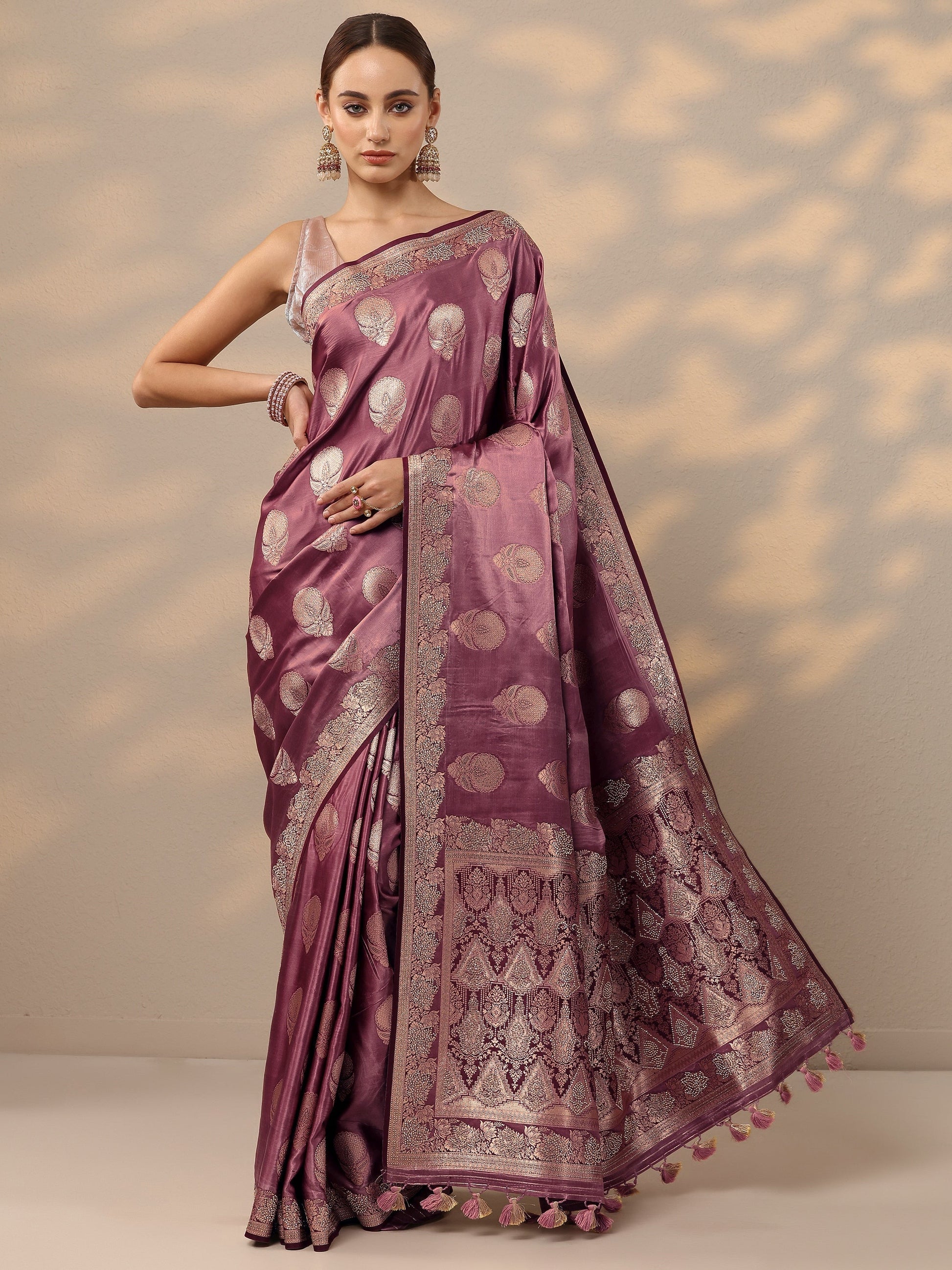 Pink Woven Design Banarasi Silk Blend Saree With Unstitched Blouse Piece