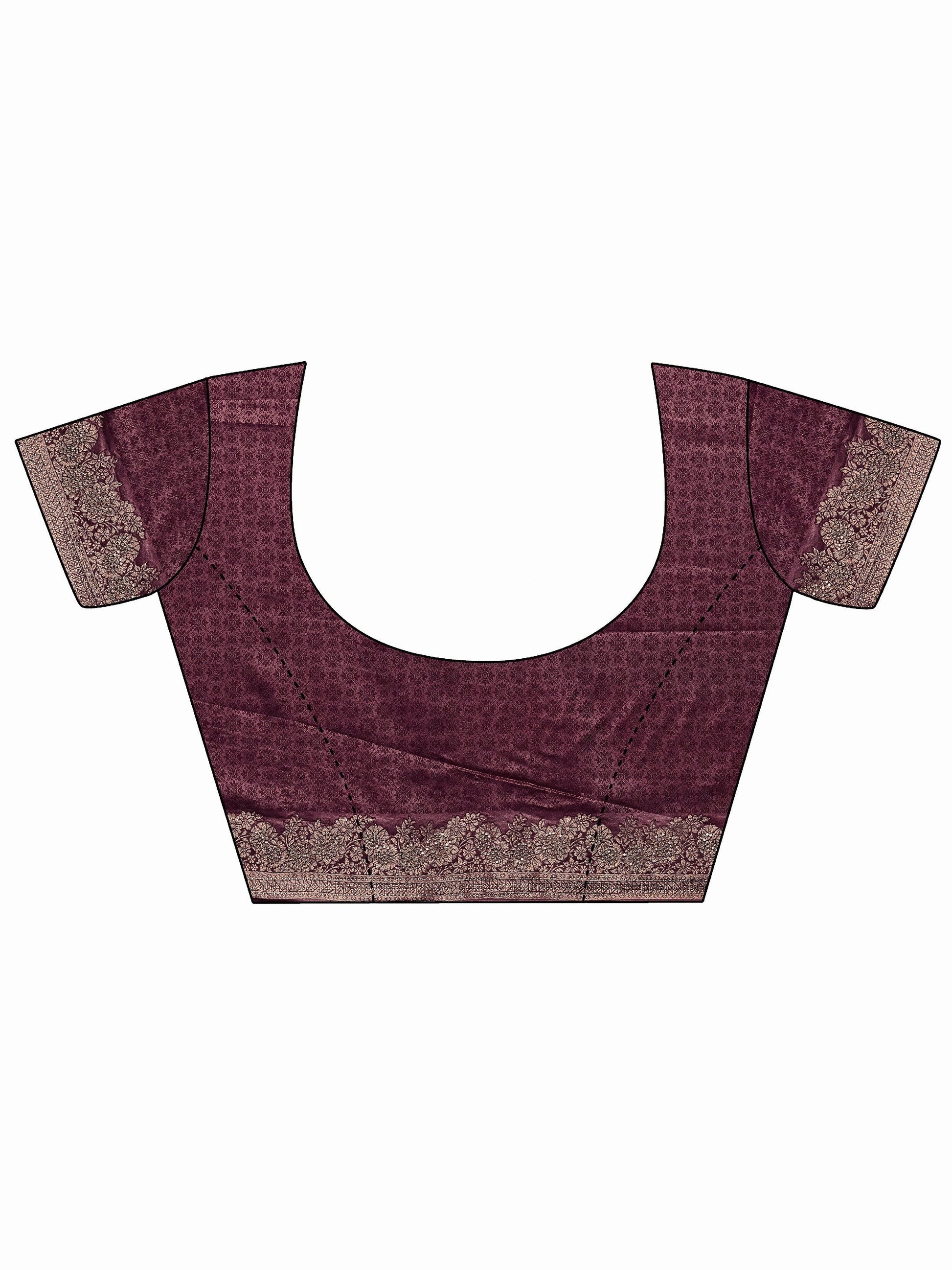 Our mauve printed silk blend saree features captivating floral print. Complemented with a blouse piece. This charming saree is perfect for festive occasions.