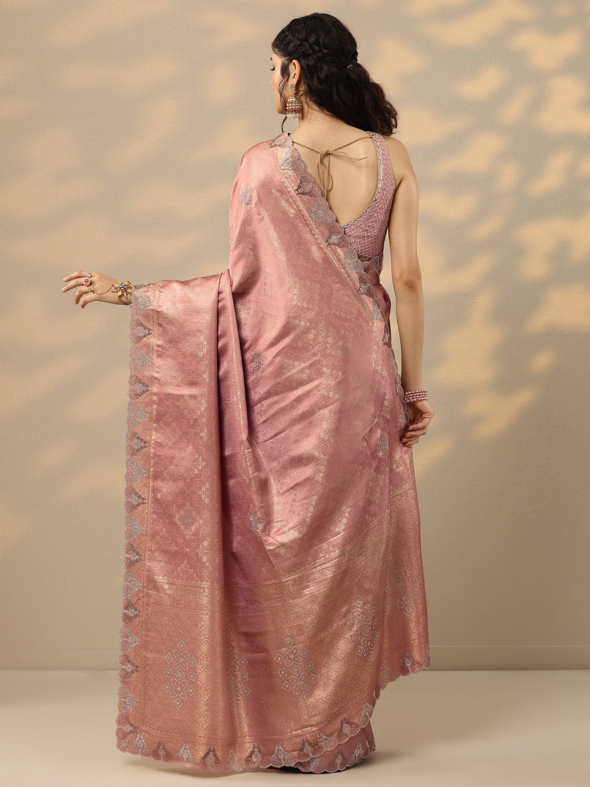 Pink Woven Design Banarasi Silk Blend Saree With Unstitched Blouse Piece