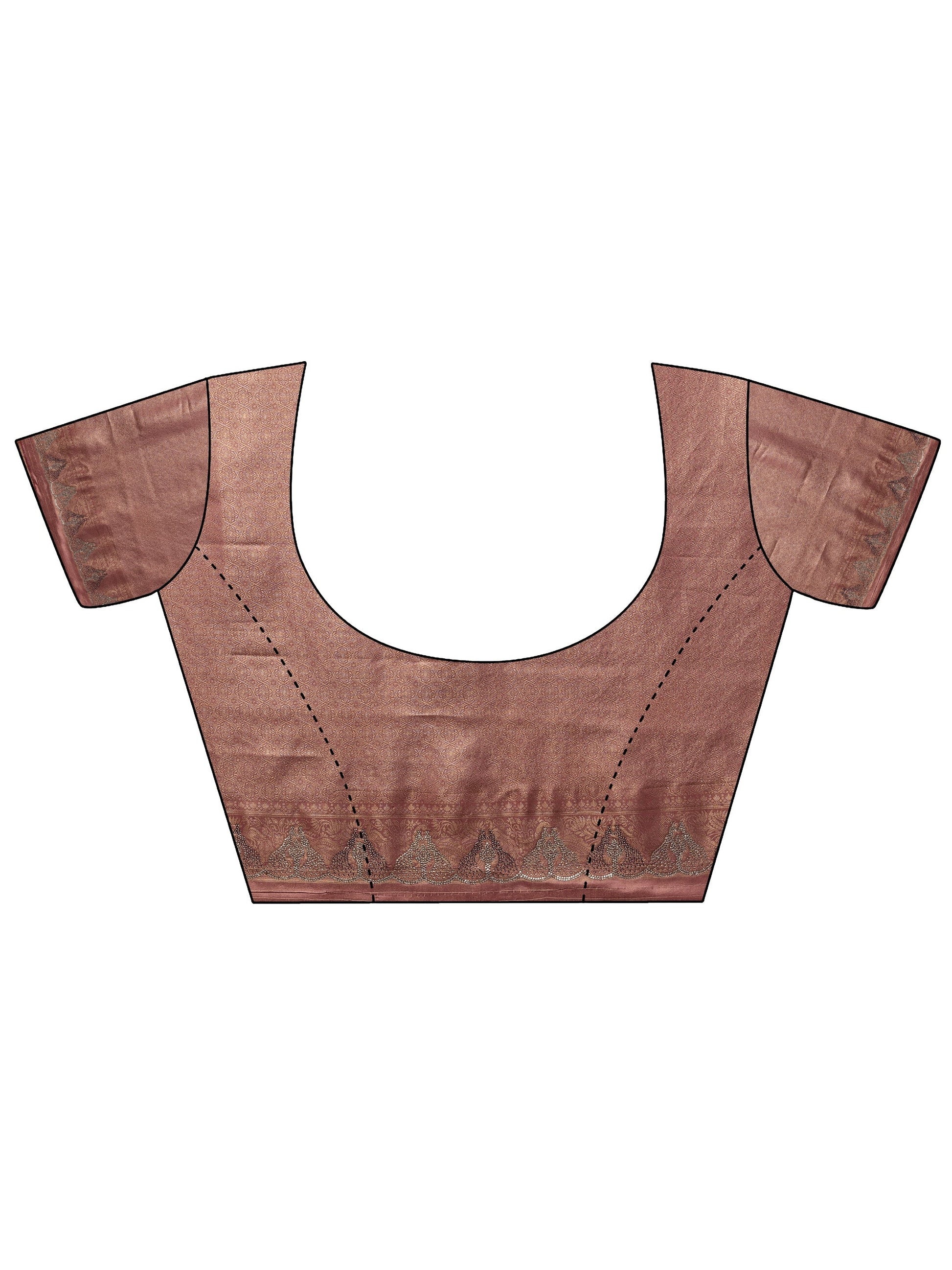 Our peach printed silk blend saree features captivating top pattern. Complemented with a blouse piece. This charming saree is perfect for festive occasions.