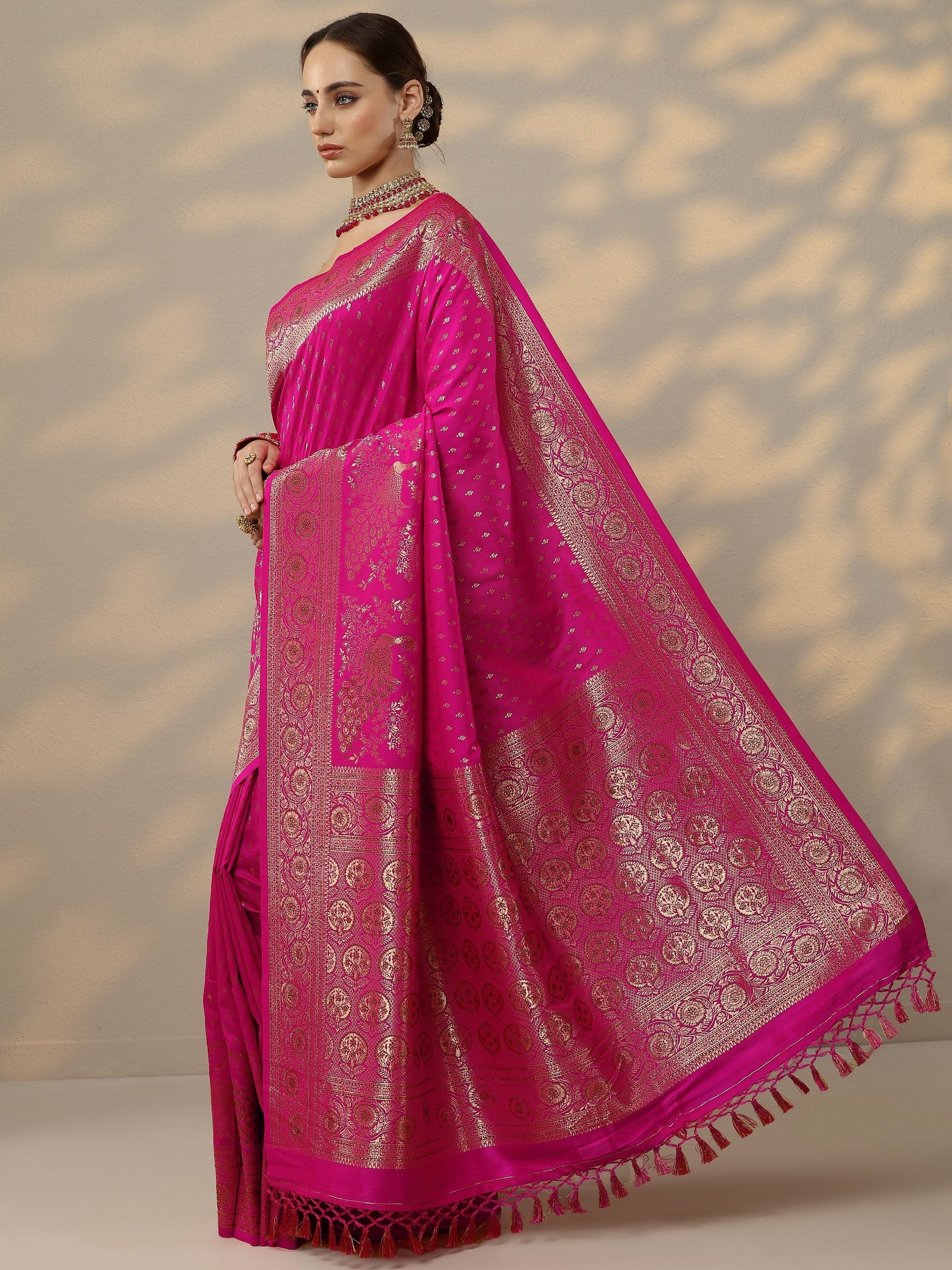 Pink Woven Design Banarasi Silk Blend Saree With Unstitched Blouse Piece