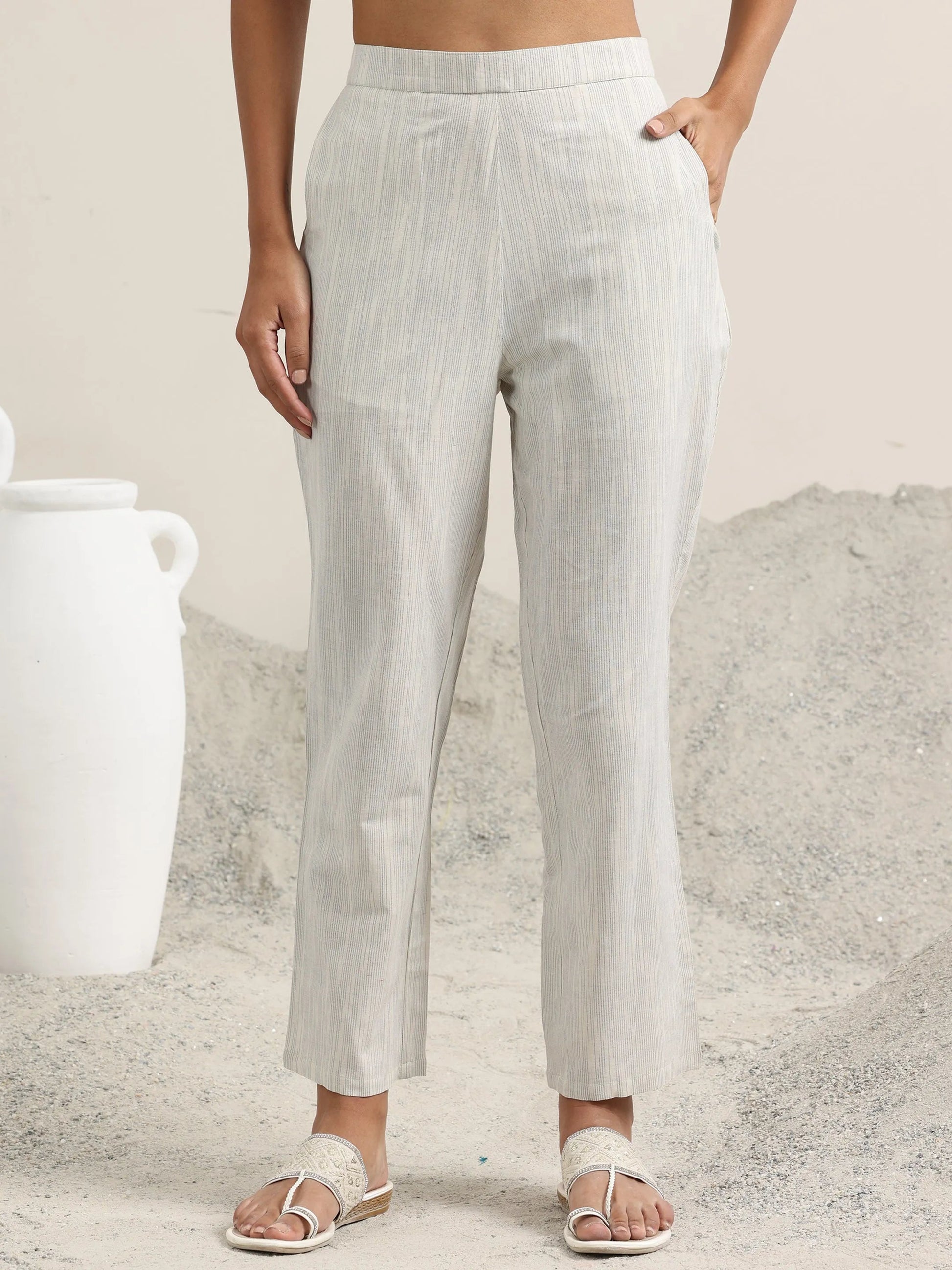 Our 3-piece pink printed cotton blend straight suit set features a straight-fit kurta with a round neckline and three-quarter sleeves. Complemented with matching straight pants with a partially elasticated waistband, roomy pockets, and a printed dupatta. Adorned with chevron prints, fabric-trim accents and thread work, this style is perfect for elevared everyday style.