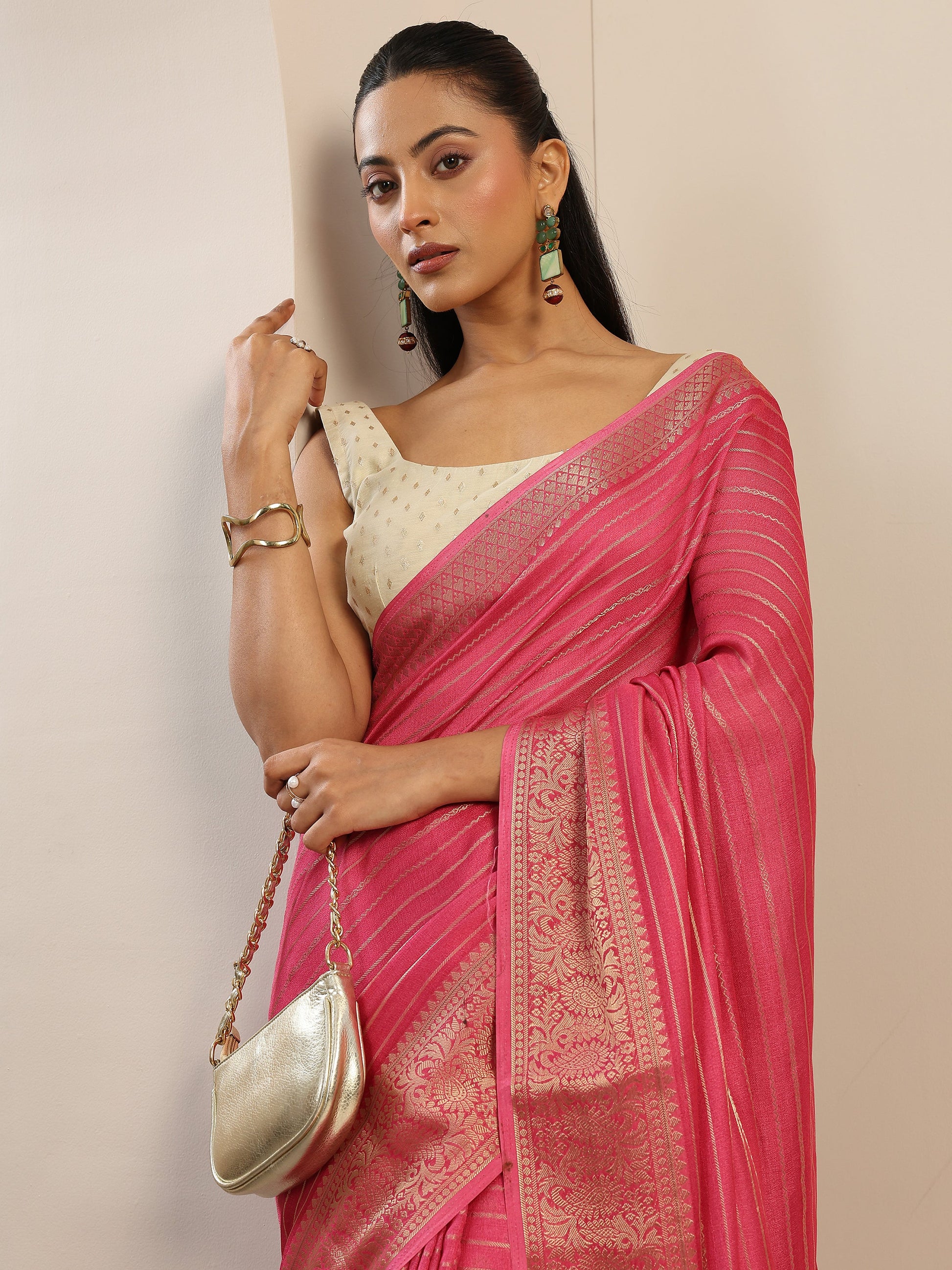 Pink Woven Design Georgette Saree With Unstitched Blouse Piece
