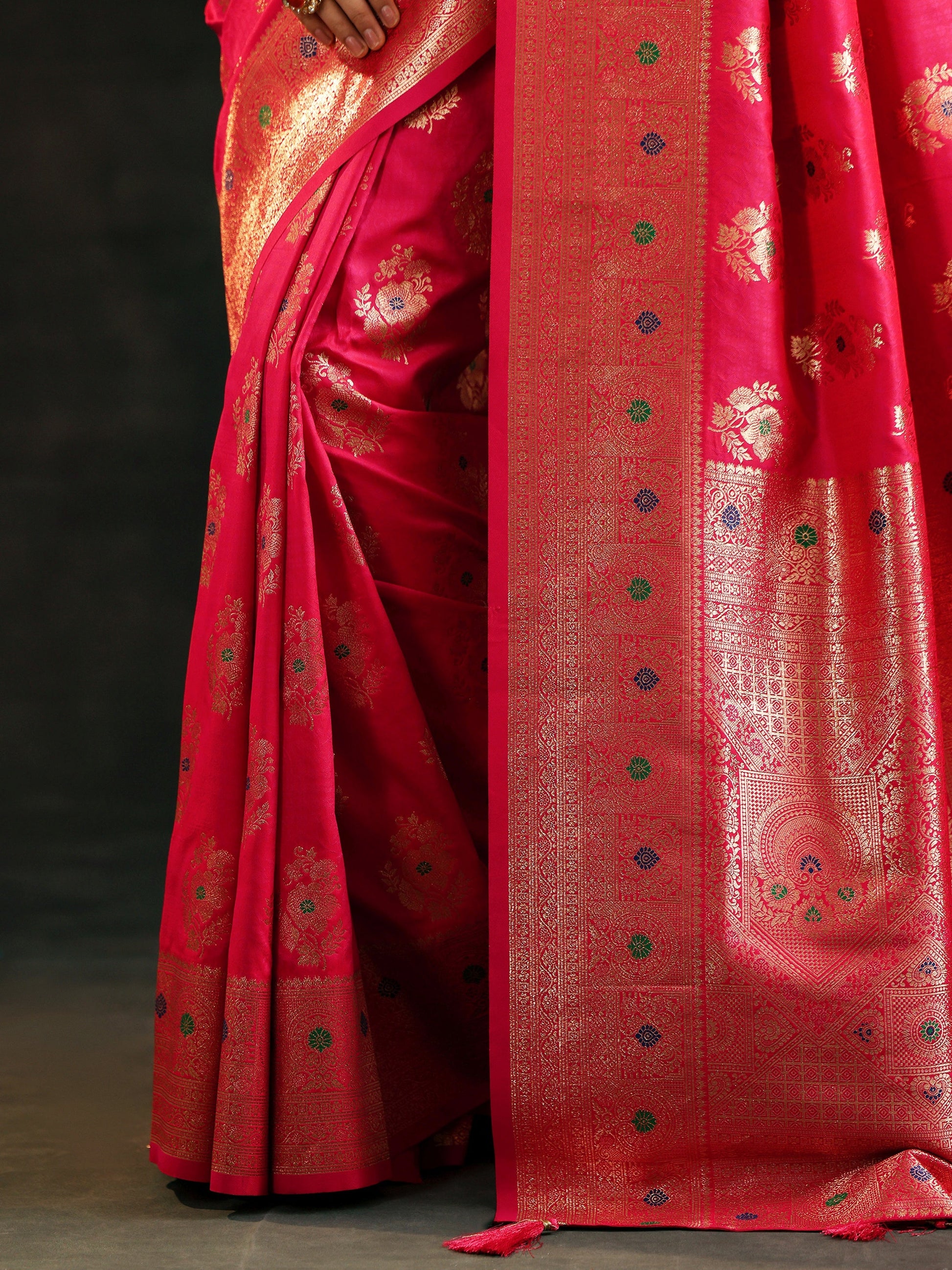 Pink Woven Design Silk Blend Saree With Unstitched Blouse Piece