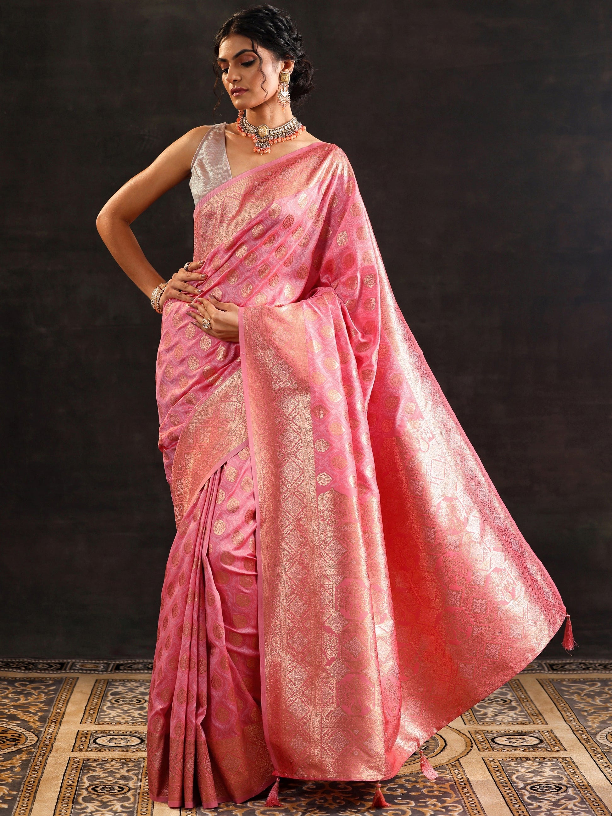 Pink Woven Design Silk Blend Saree With Unstitched Blouse Piece
