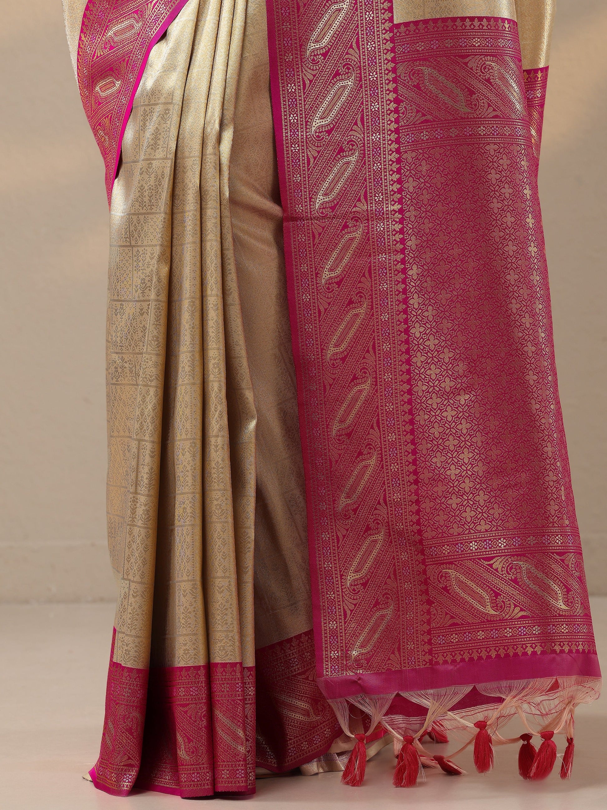Pink Woven Design Silk Blend Saree With Unstitched Blouse Piece