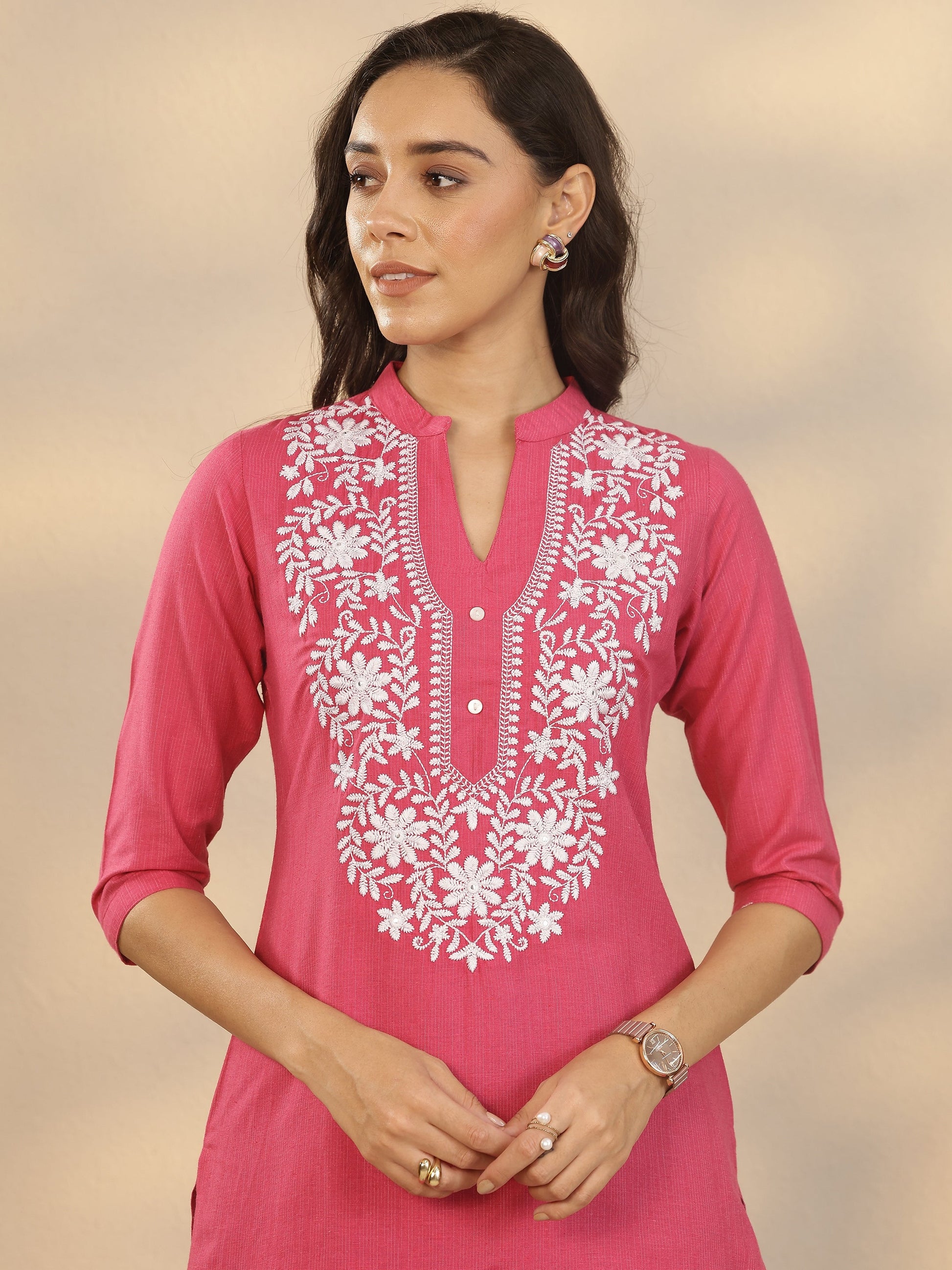 Pink Yoke Design Cotton Blend Straight Short Kurti