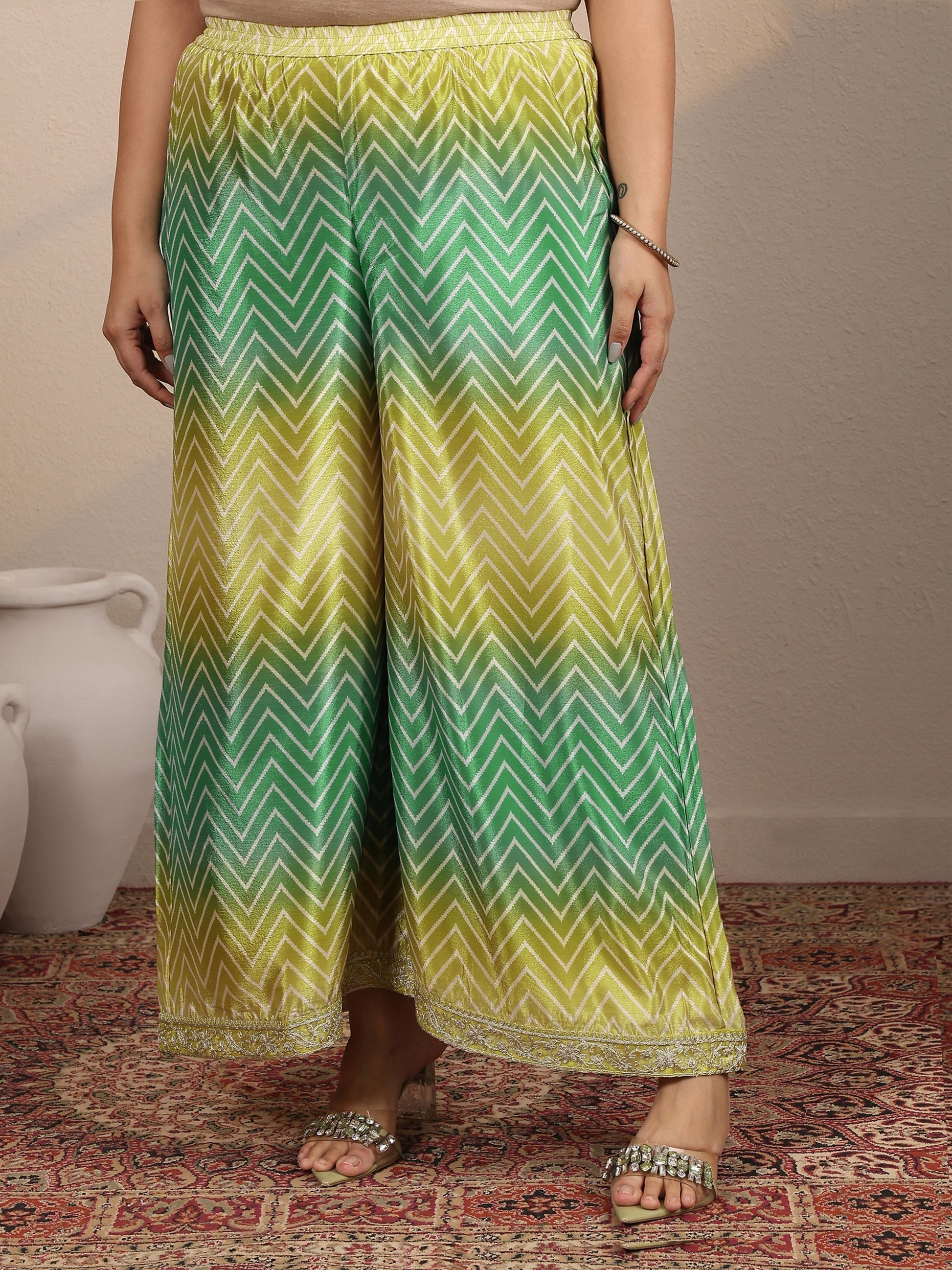 Plus Size Green Embroidered Chinon Straight Suit Set With Dupatta