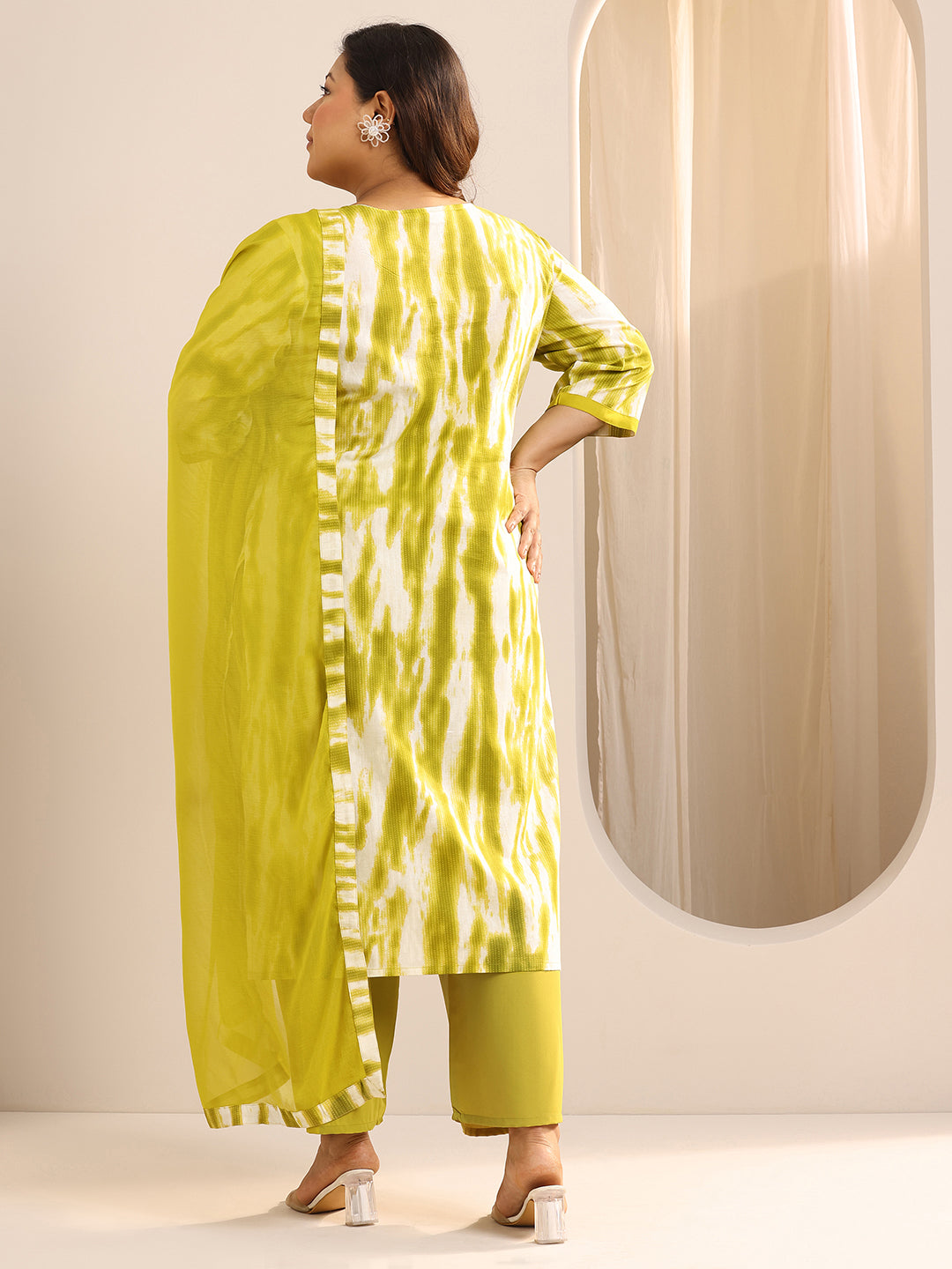 Plus Size Green Printed Cotton Straight Suit Set With Dupatta