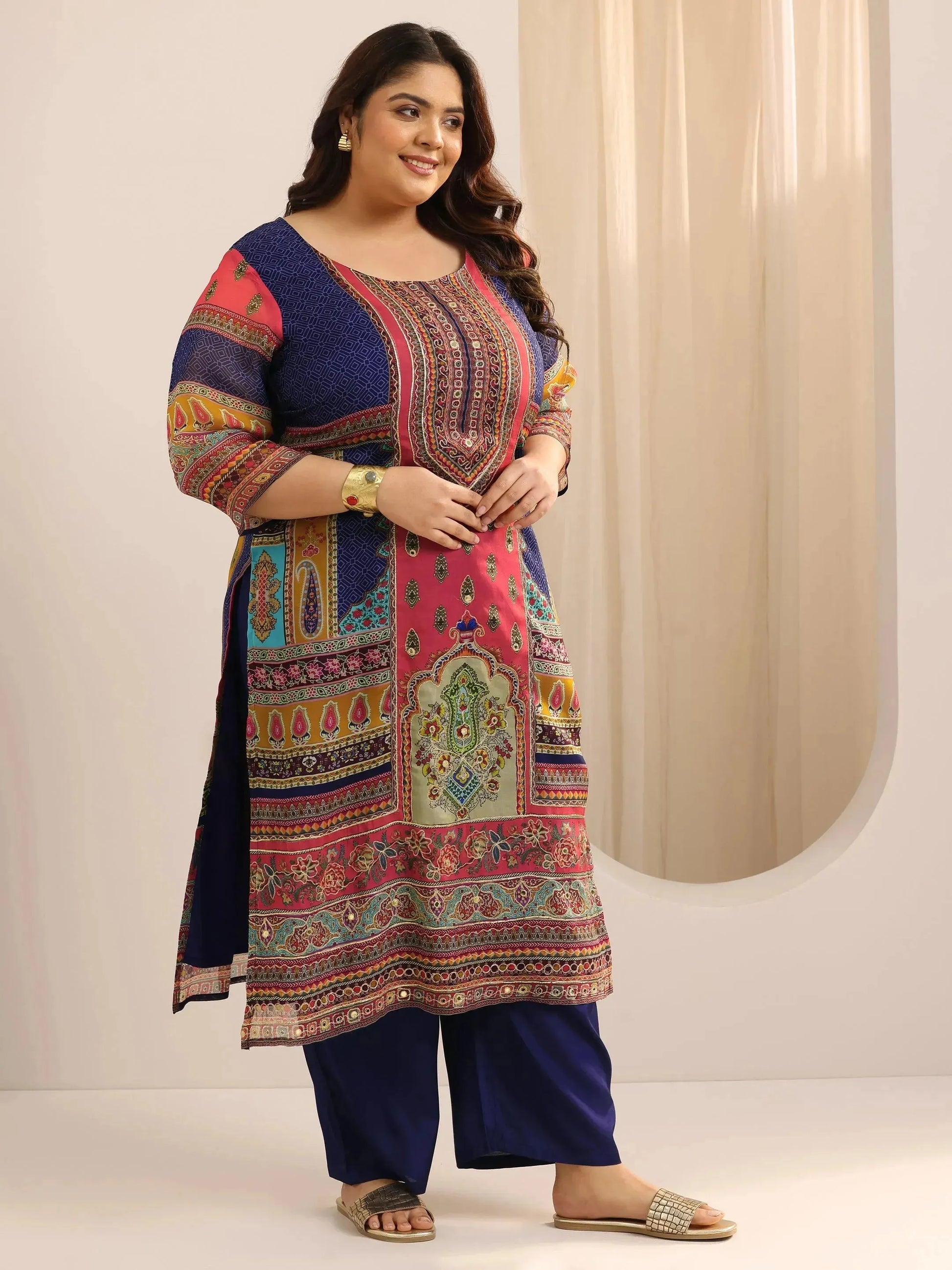 Plus Size Mutli Printed Organza Straight Suit Set With Dupatta