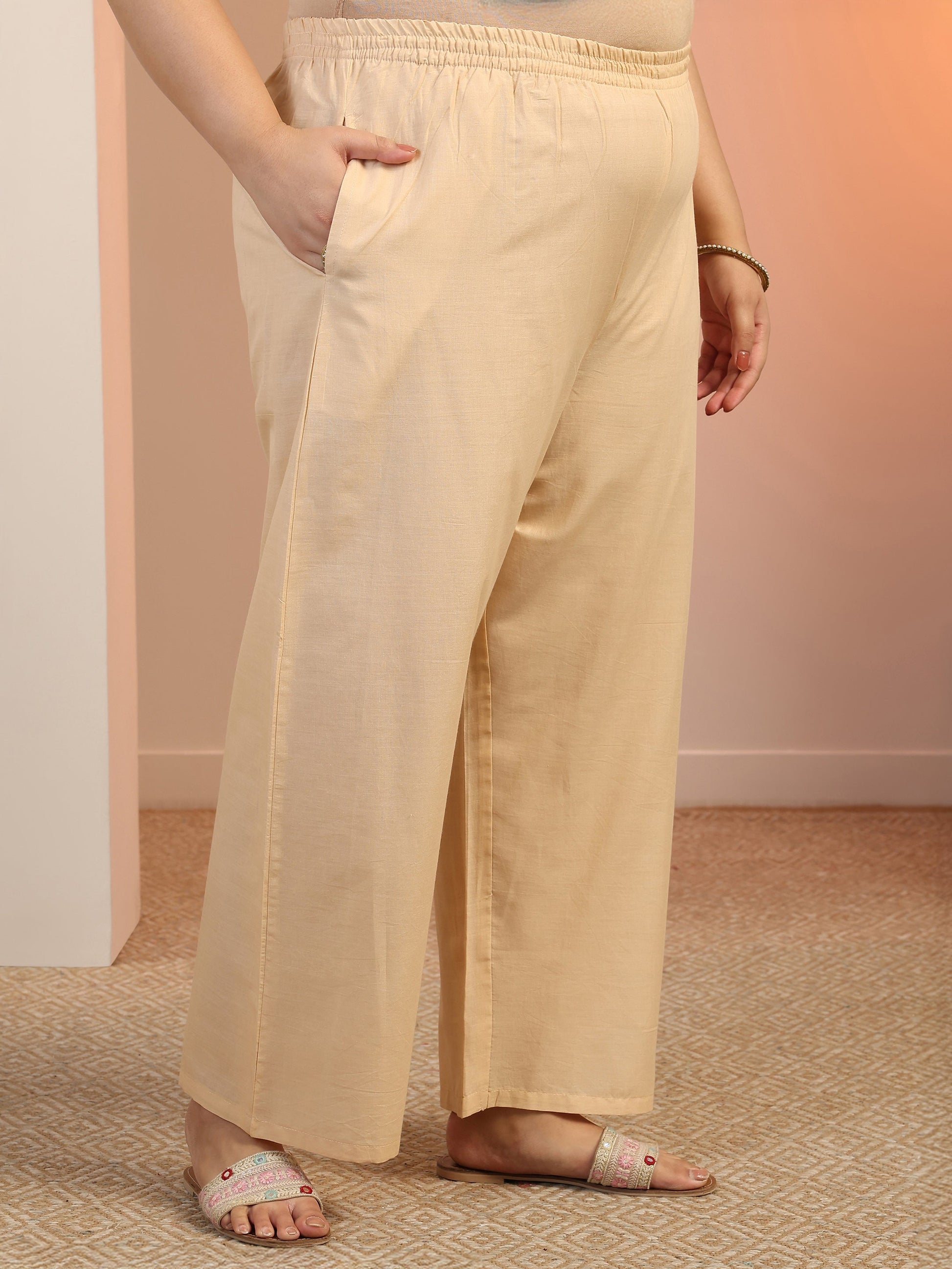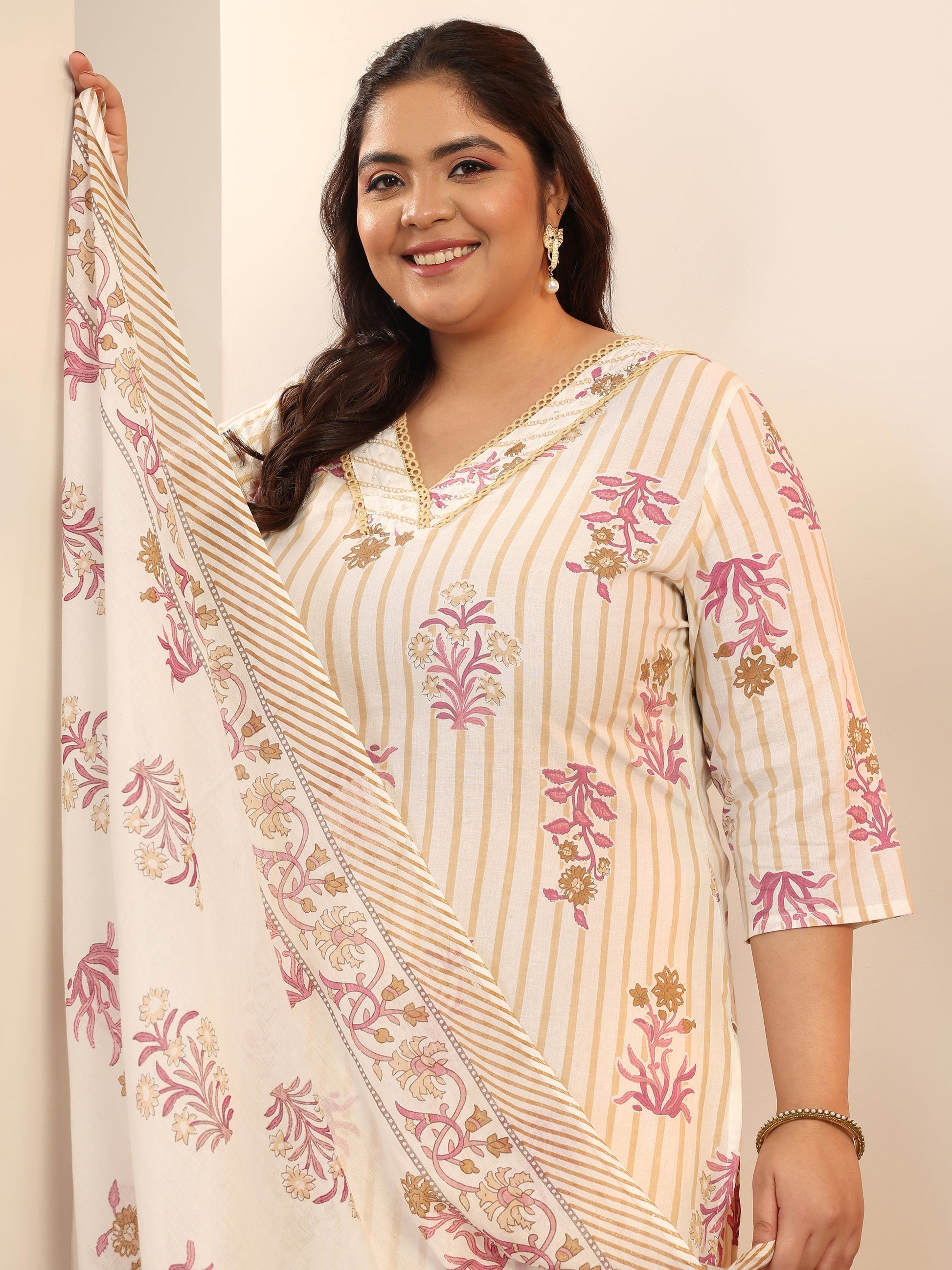 Plus Size Off White Floral Printed Cotton Straight Suit Set With Dupatta