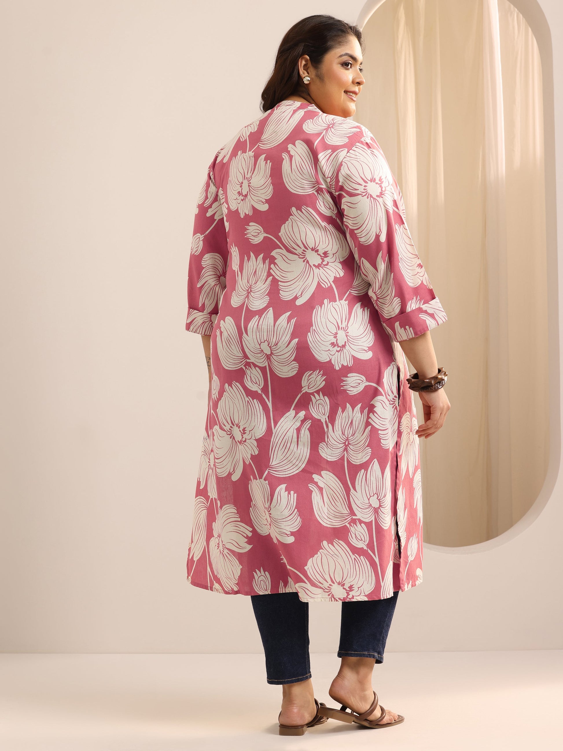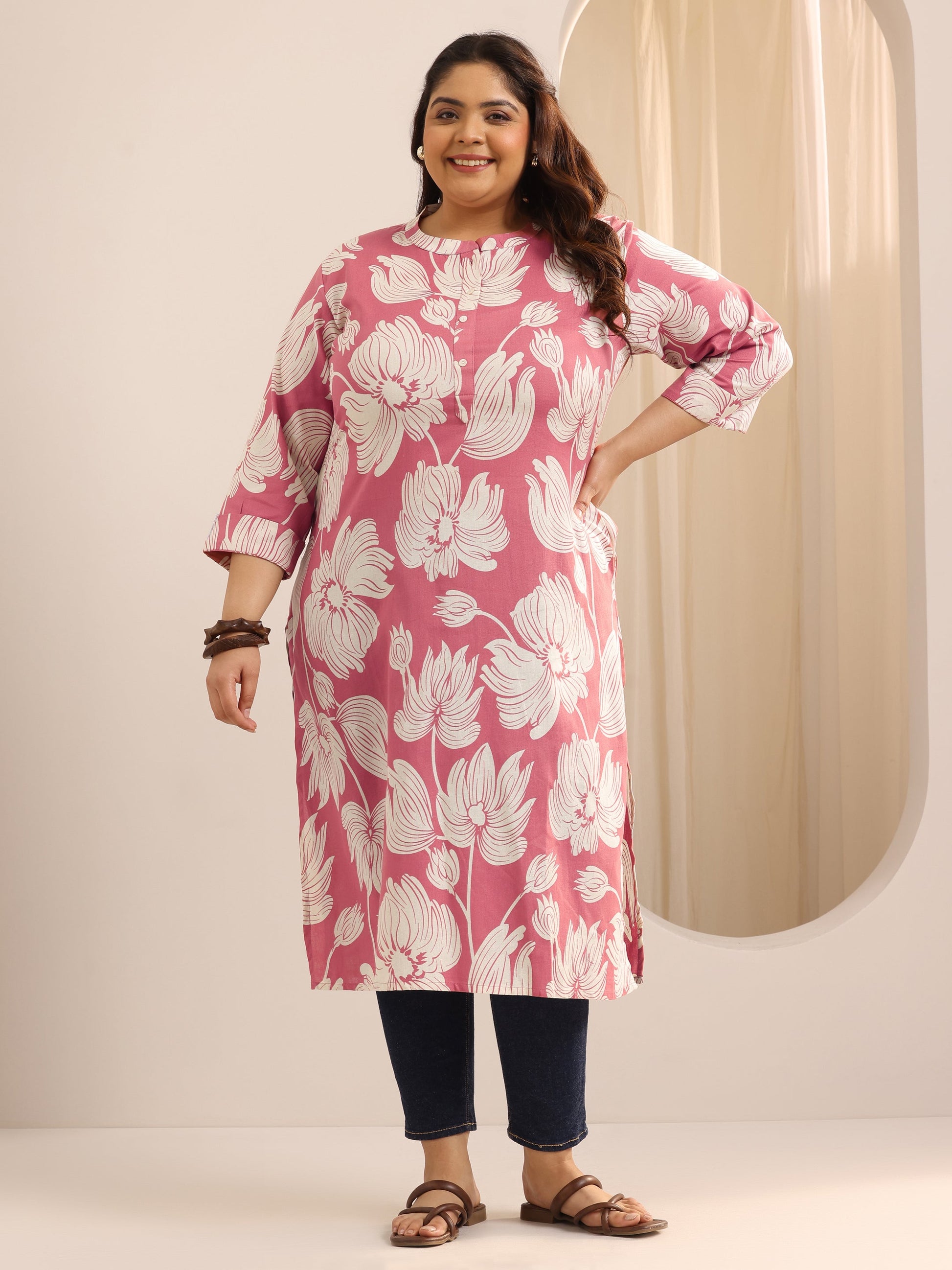 Libas Extra Love collection features our signature designs in comfortable plus sizes. Our 1-piece pink cotton straight-fit kurta features a round neckline, regular sleeves, and statement Yoke. Adorned with printed embellishments, this style is perfect for casual wear.
