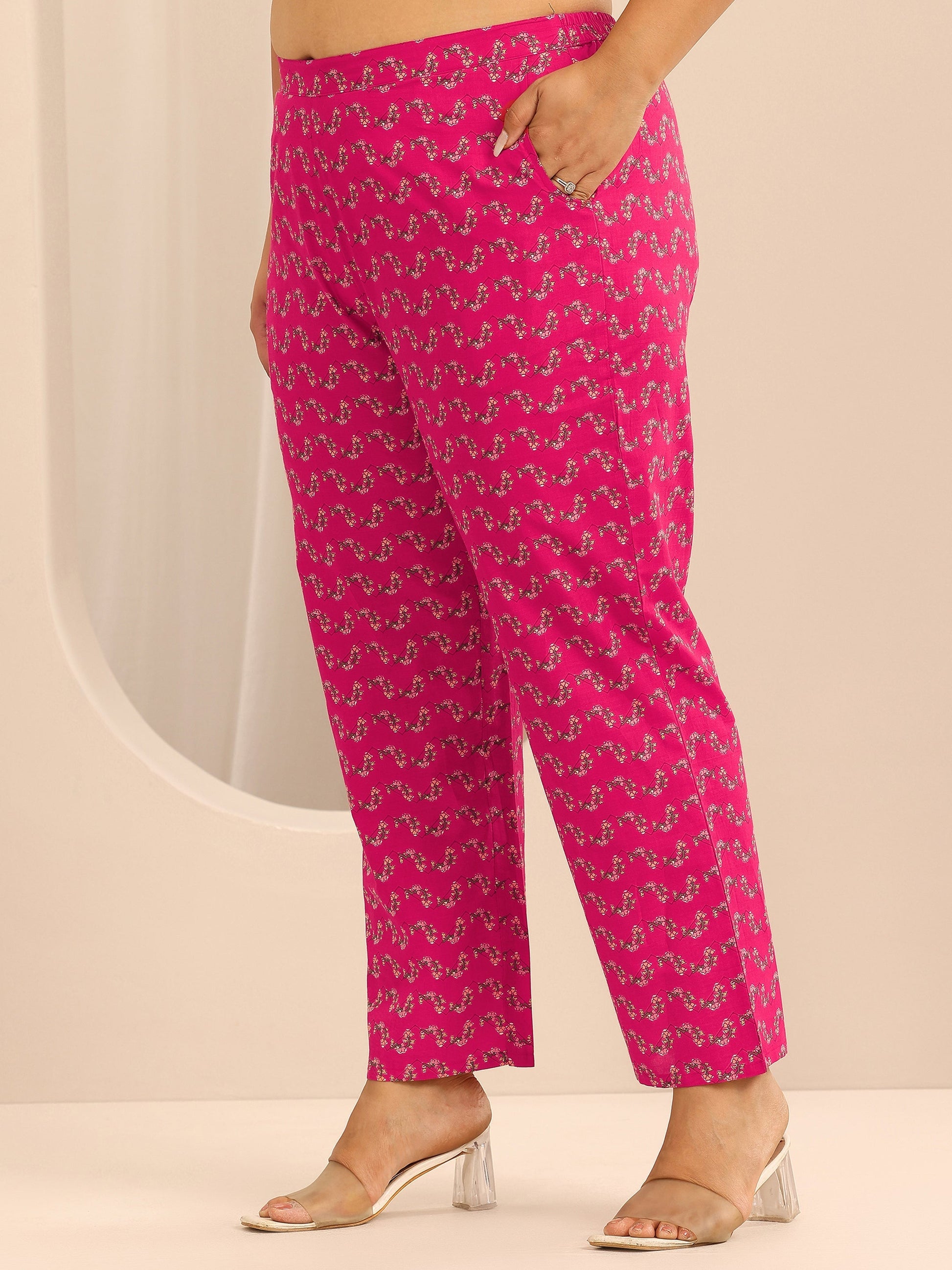 Plus Size Pink Printed Cotton Straight Kurta Set