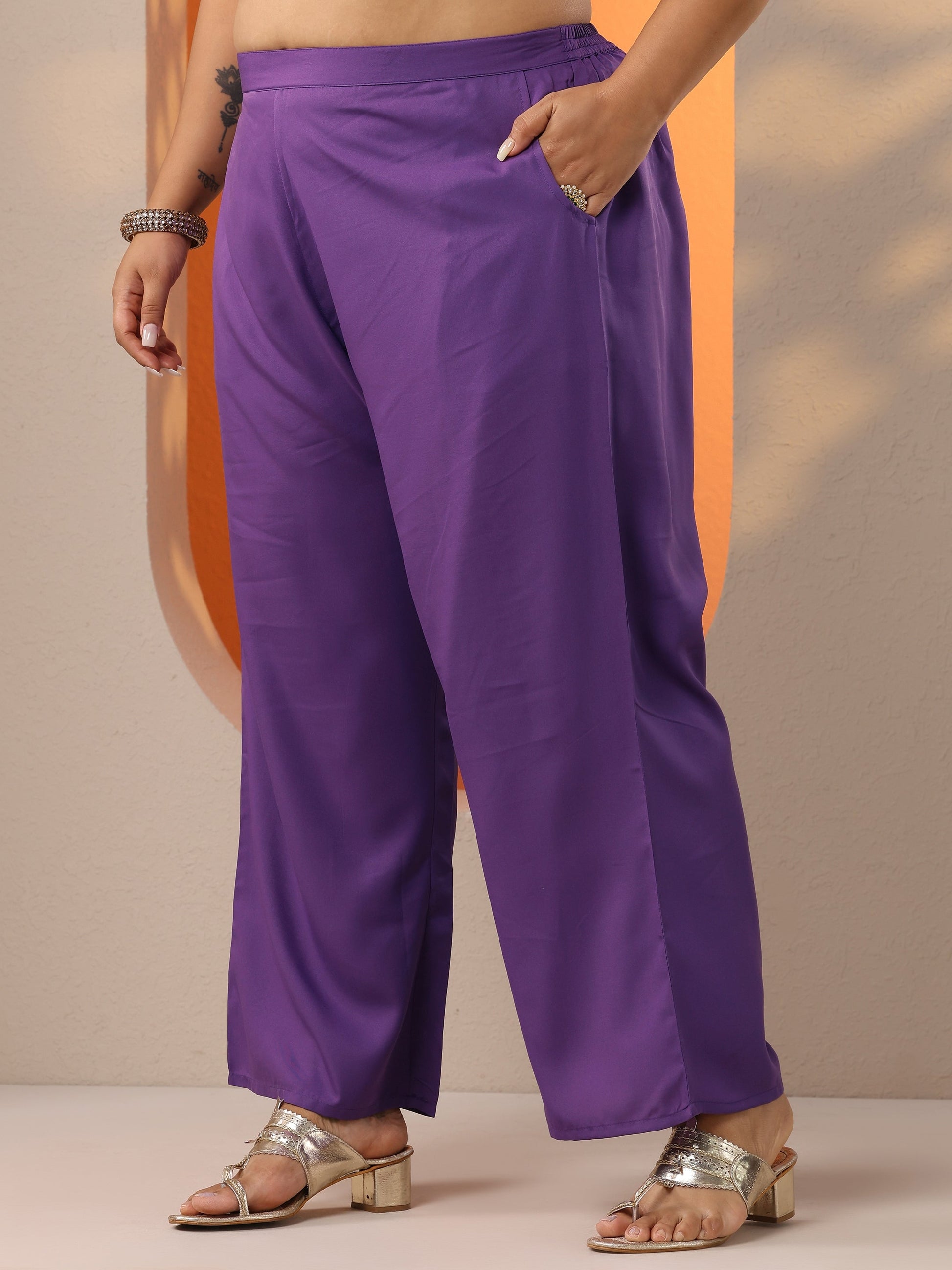 Plus Size Purple Printed Viscose Straight Suit Set With Dupatta