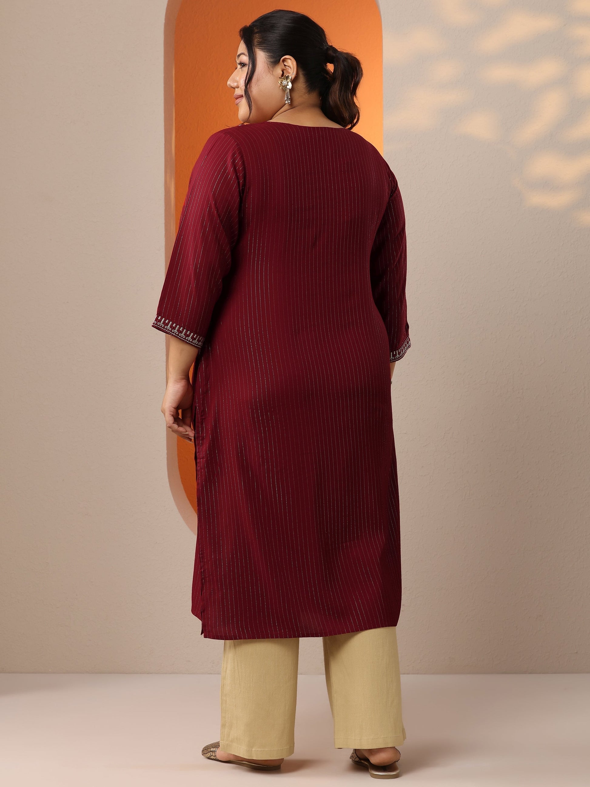 Our 1-piece maroon rayon straight-fit kurta features a V-neckline, regular sleeves, and statement Yoke. Adorned with embellished , this style is perfect for work wear and casual wear.