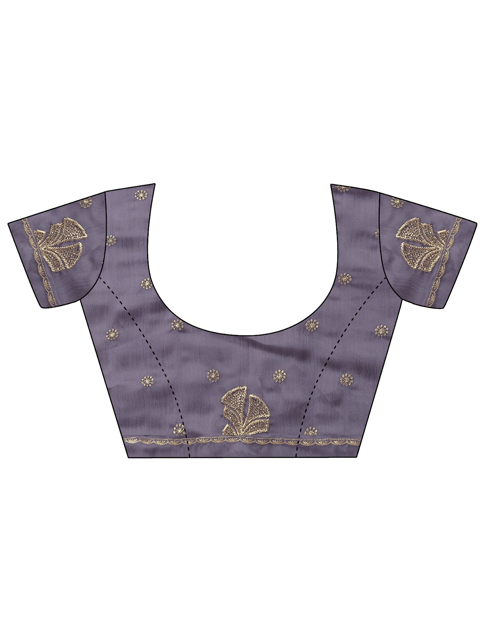 Purple Embellished Chinon Saree With Unstitched Blouse Piece
